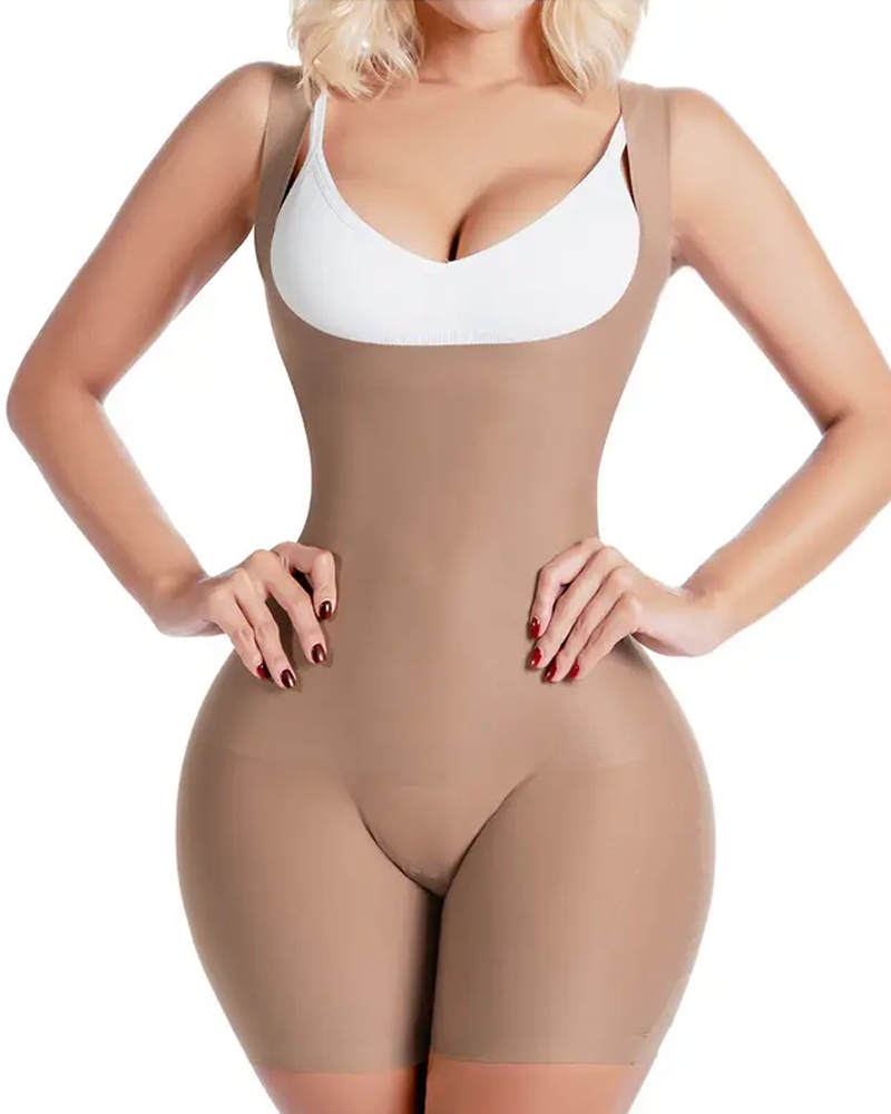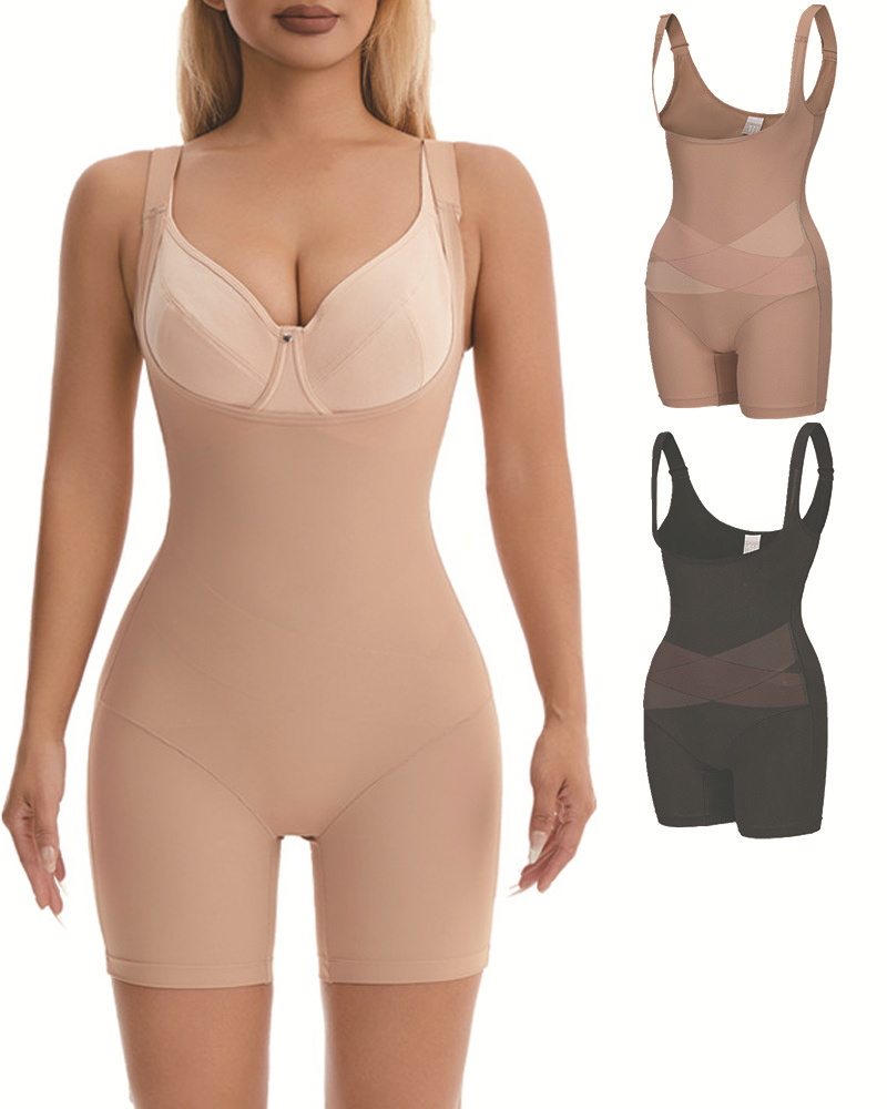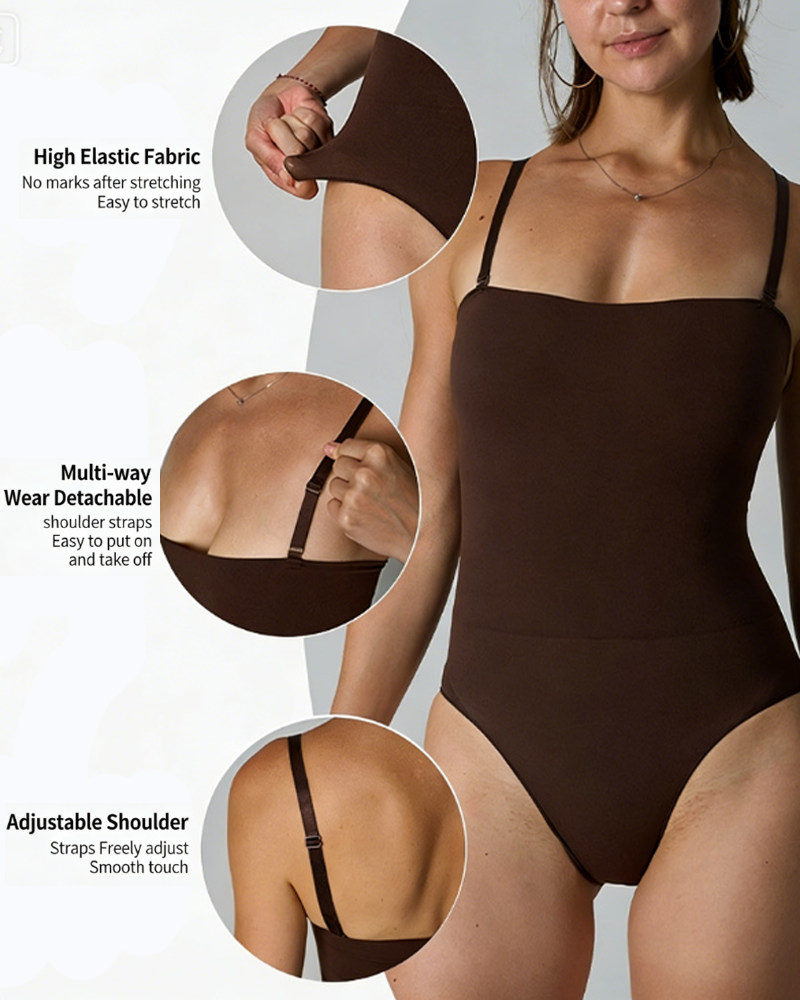 Detachable Shoulder Straps Buckle-Up Open Crotch Tummy Control Shaping Bodysuit
