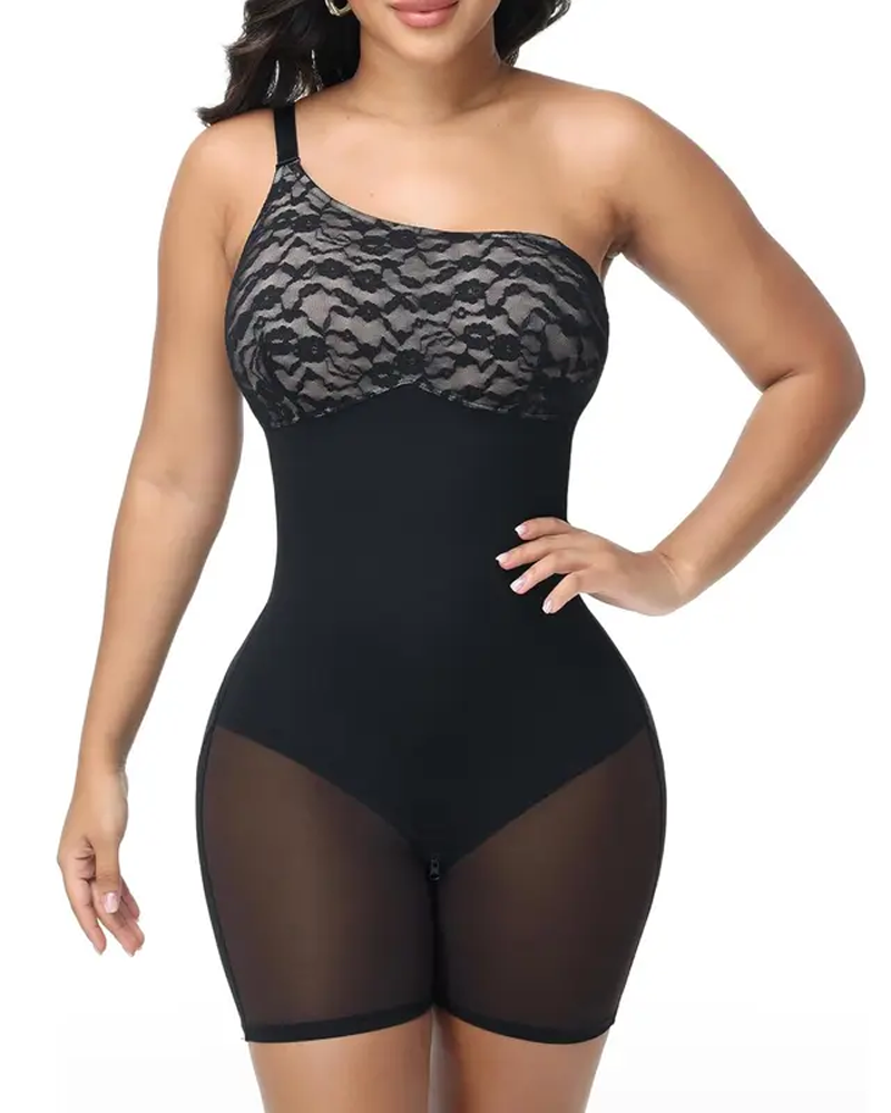 One-Shoulder Lace Mesh Shapewear Bodysuit (Pre-Sale)