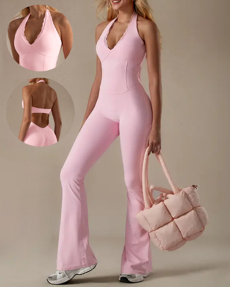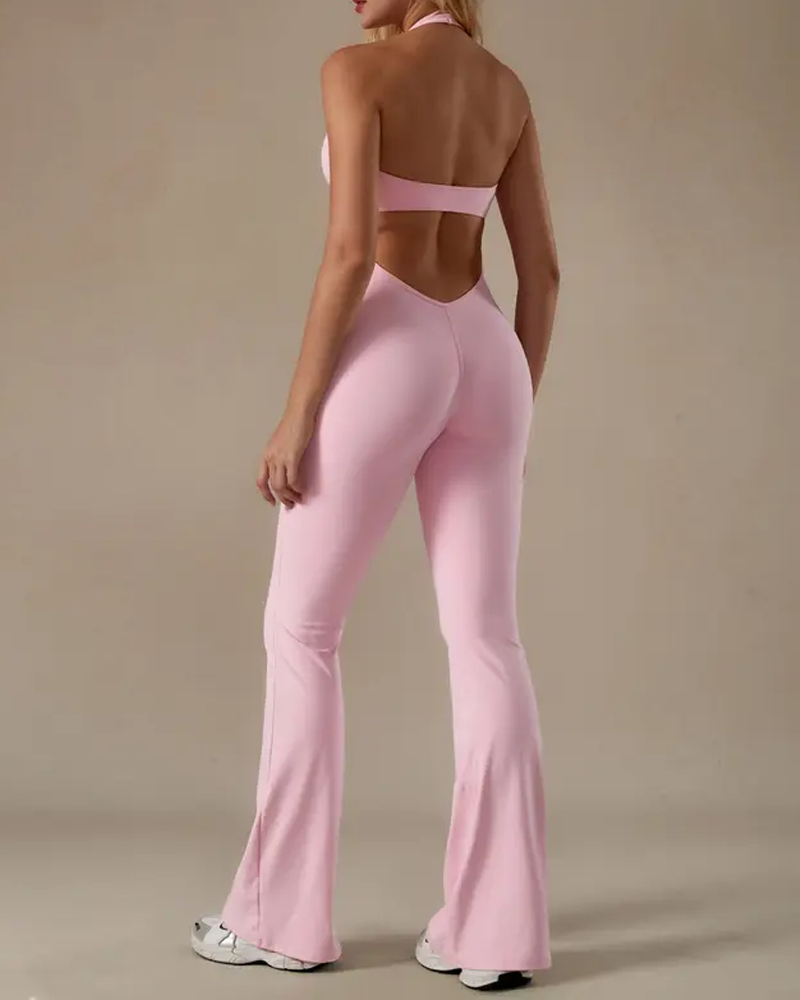 Sleeveless Halter Neck Deep V Backless High-Waisted Bodysuit
