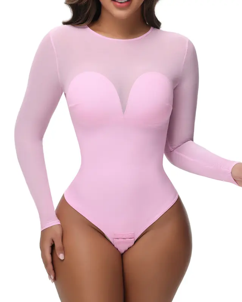 Mesh Patchwork Long Sleeve Bodysuit (Pre-Sale)