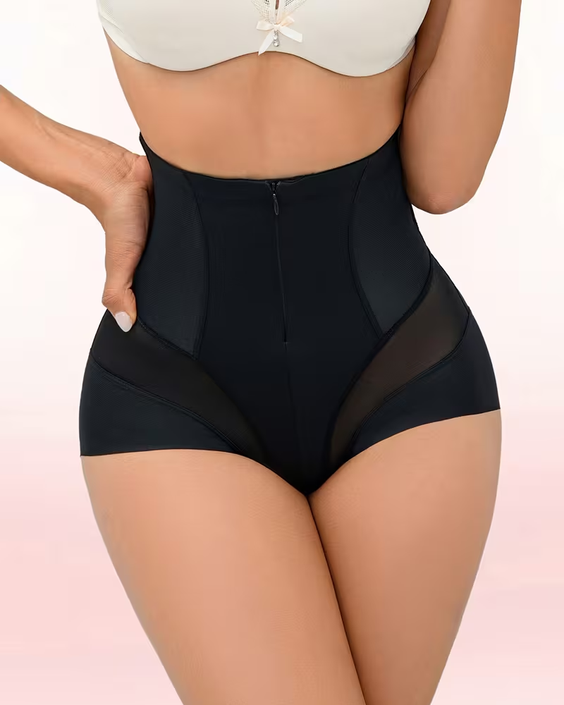 Zipper High-Waist Mesh Tummy Control Butt Lifter Shapewear Shorts