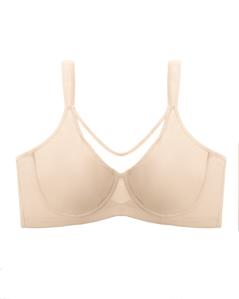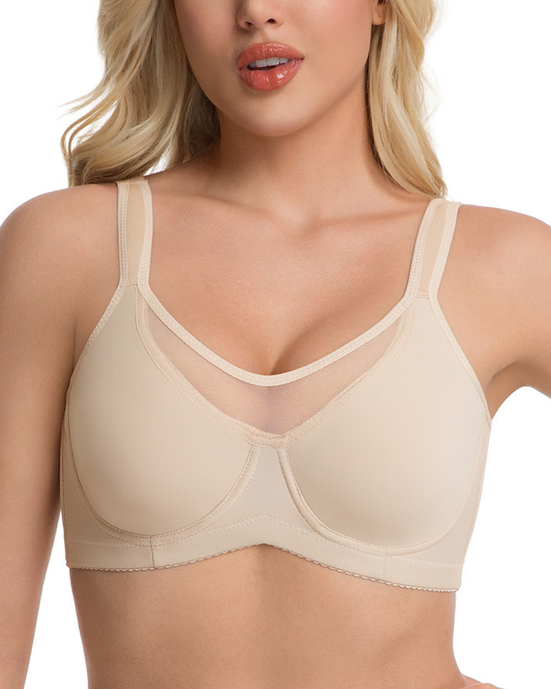 • This bra features a comfortable, non-irritating underwire design that effectively prevents sagging and provides firm support. The hidden inner lining on the sides of the cups enhances the natural breast shape and provides excellent support. It's especially suitable for fuller busts, ensuring a comfortable and secure fit.