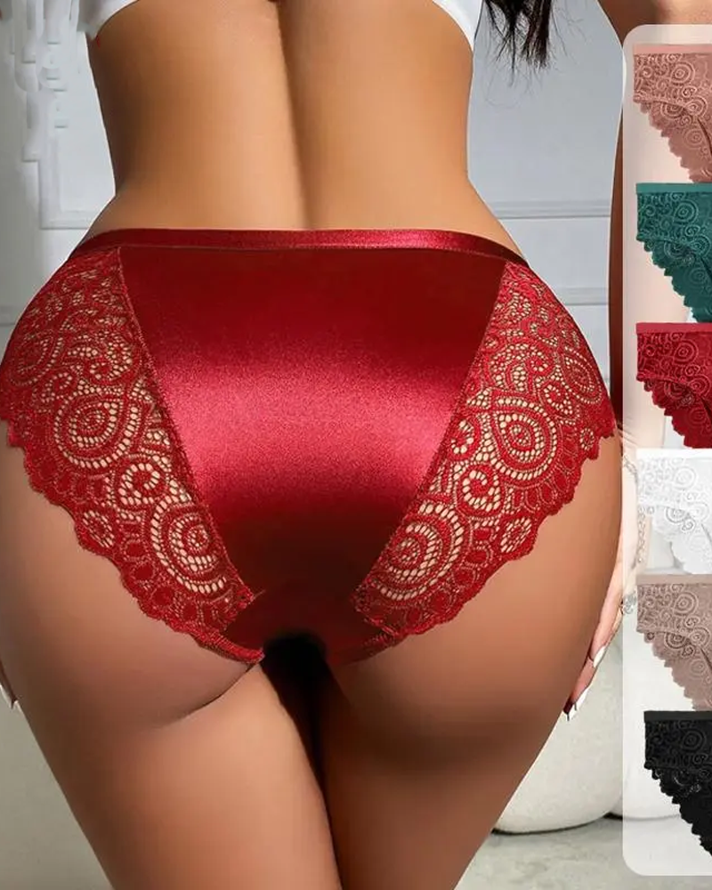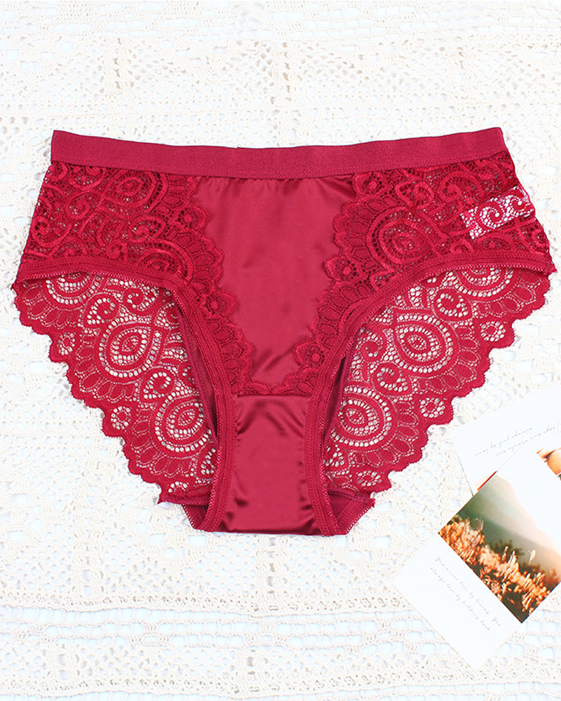 High-Waisted Breathable Color-Blocked Lace Floral Design