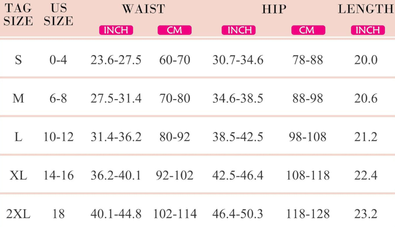 Our shapewear is designed to slim and smooth, so picking a size too small will cause bulges and discomfort.