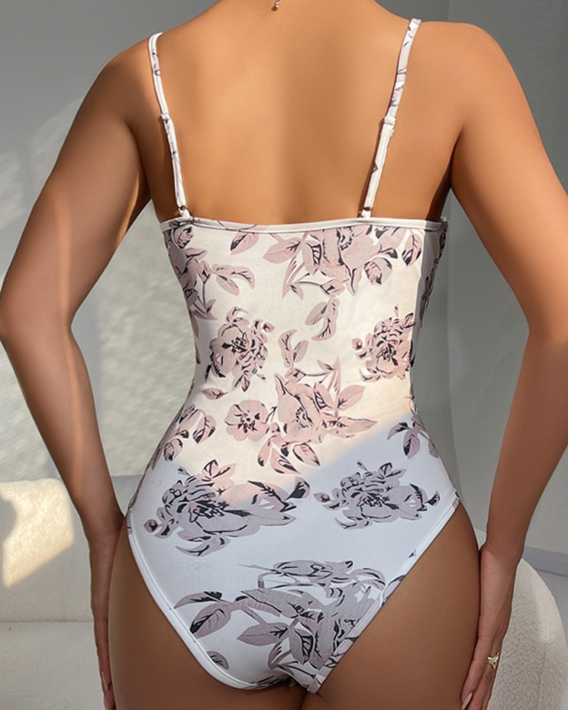 • Retro Floral Print: Featuring a white background with soft pink or bright orange floral prints, this garment combines romance and individuality, effortlessly creating a retro yet stylish look. The print covers the entire body, forming a cohesive visual effect from the bra cups to the hem, adding an artistic touch to the overall style.