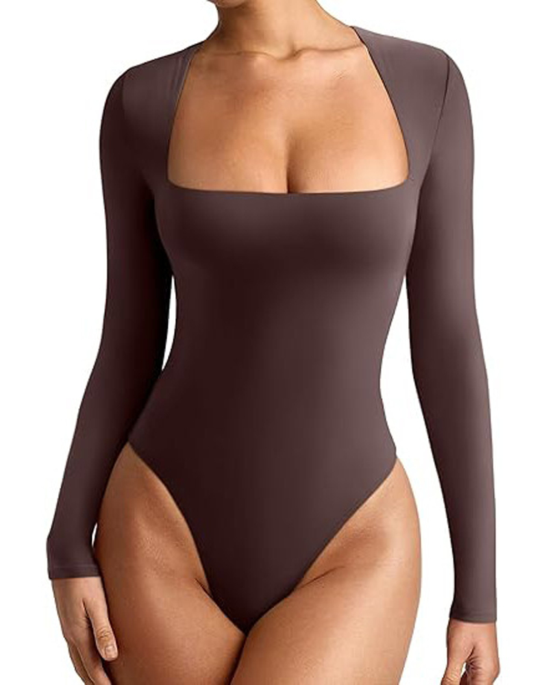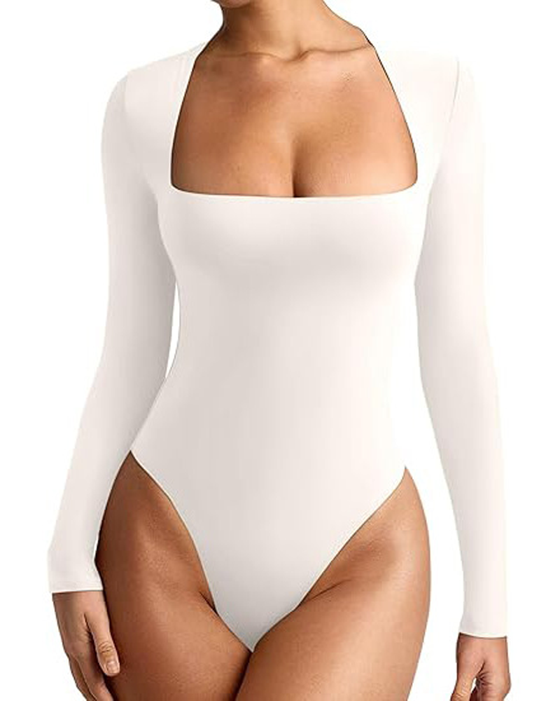 Nude-Feel Seamless Square Neck Long-Sleeved Bodysuit