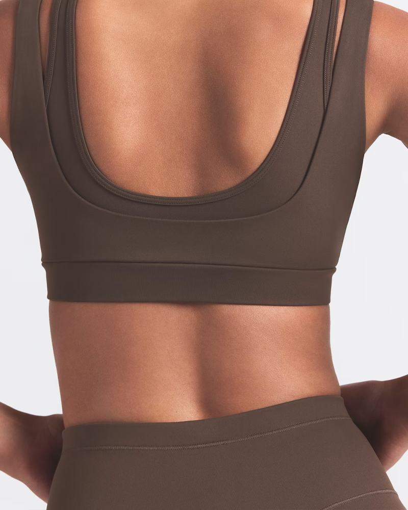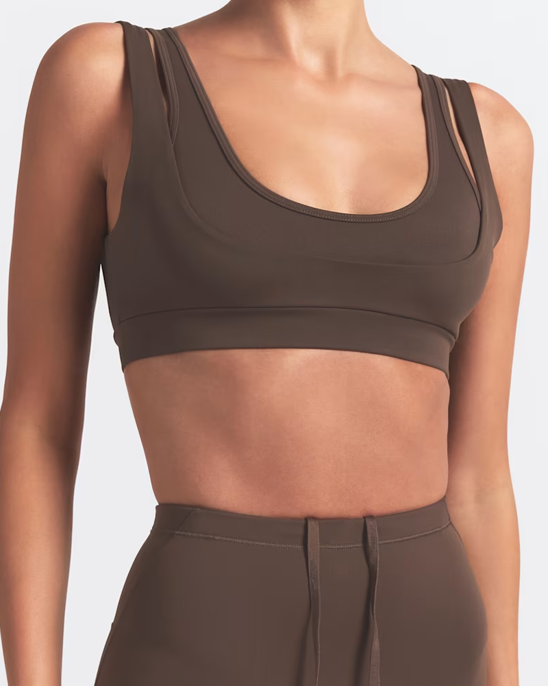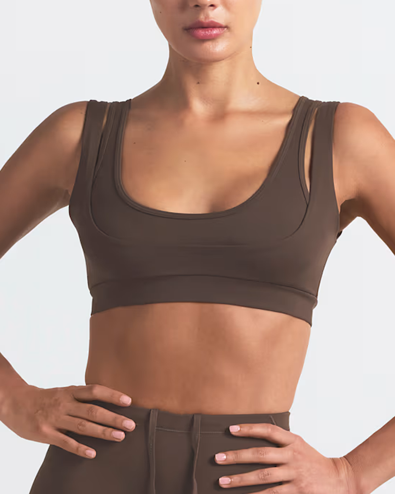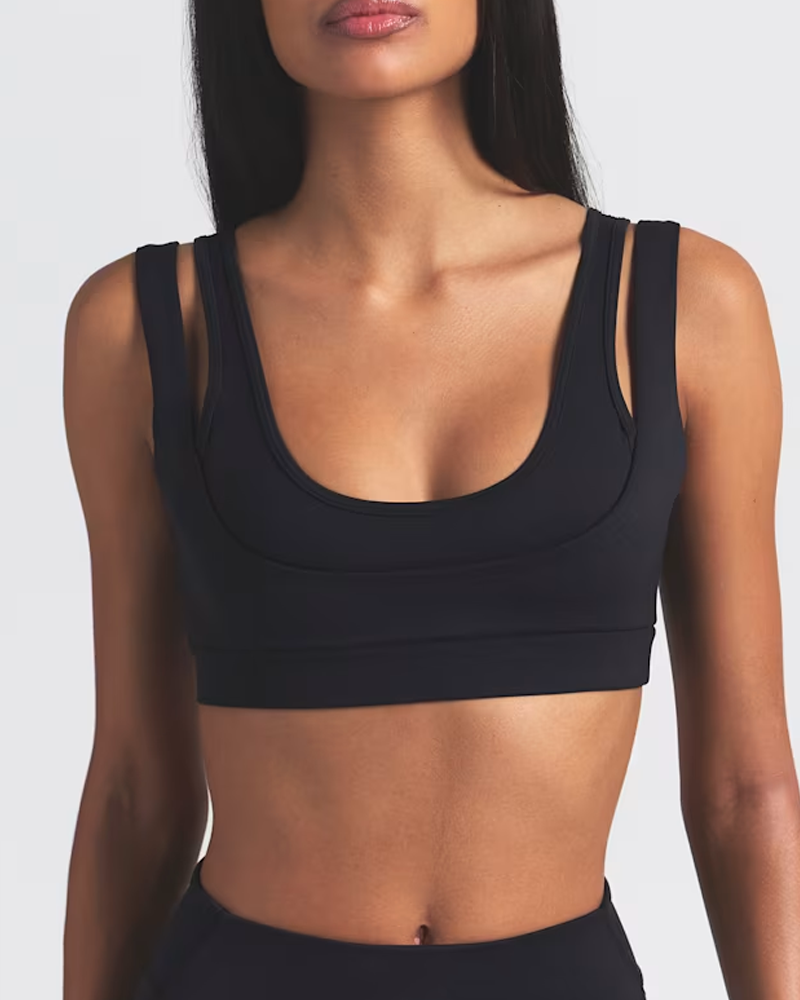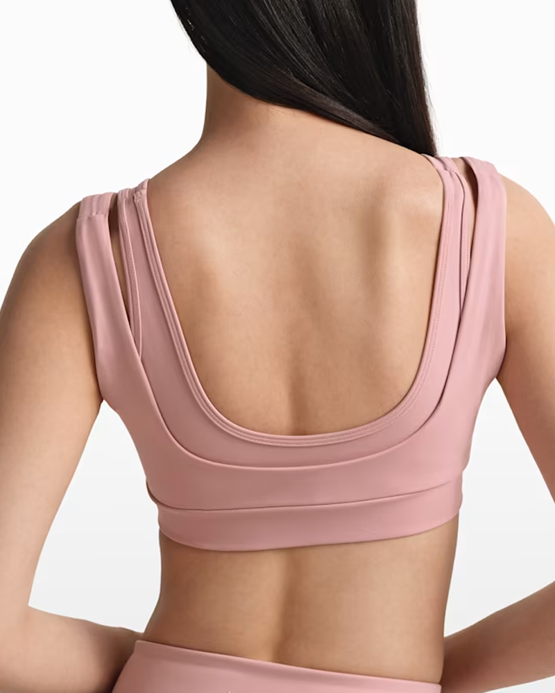 • Double-layer shoulder strap aesthetic design: The double-layer structure creates a visually layered and sophisticated look, enhancing shoulder lines and exuding a cool and high-end feel. The wide shoulder straps effectively distribute shoulder pressure, preventing shoulder constriction even after prolonged wear, while improving support and stability; the inner thin shoulder straps add design details and avoid monotony. The U-shaped neckline at the front and the U-shaped open back design neatly expose the collarbone and back lines, visually lengthening the neck and improving posture, making it beautiful and elegant when paired with backless outfits.