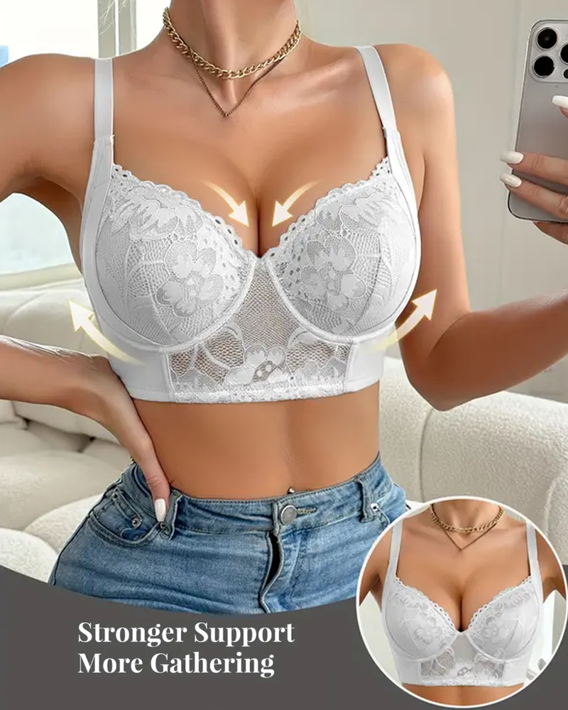 Sujetador push-up con aros y copas delgadas bordadas para soportar los senos laterales