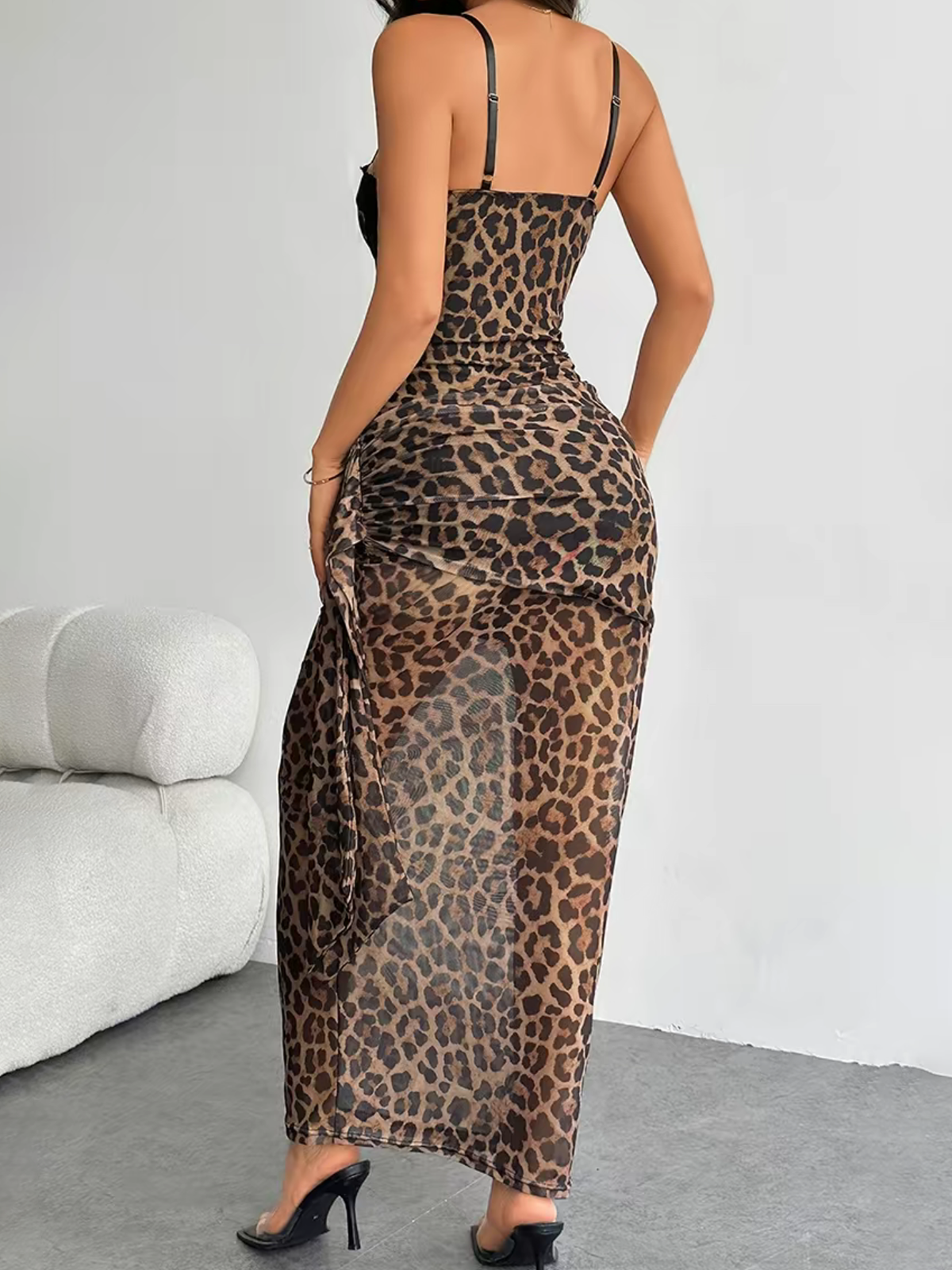 Fitted Lace Trimmed Sexy Leopard Print Dress