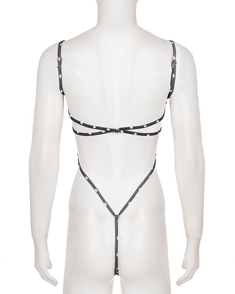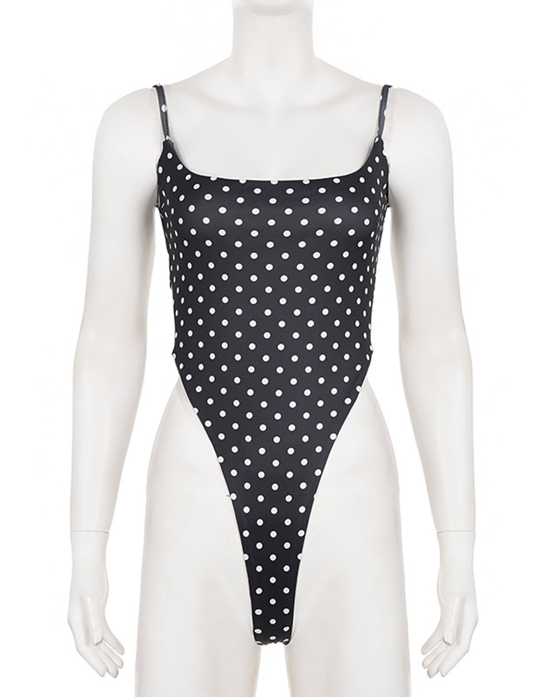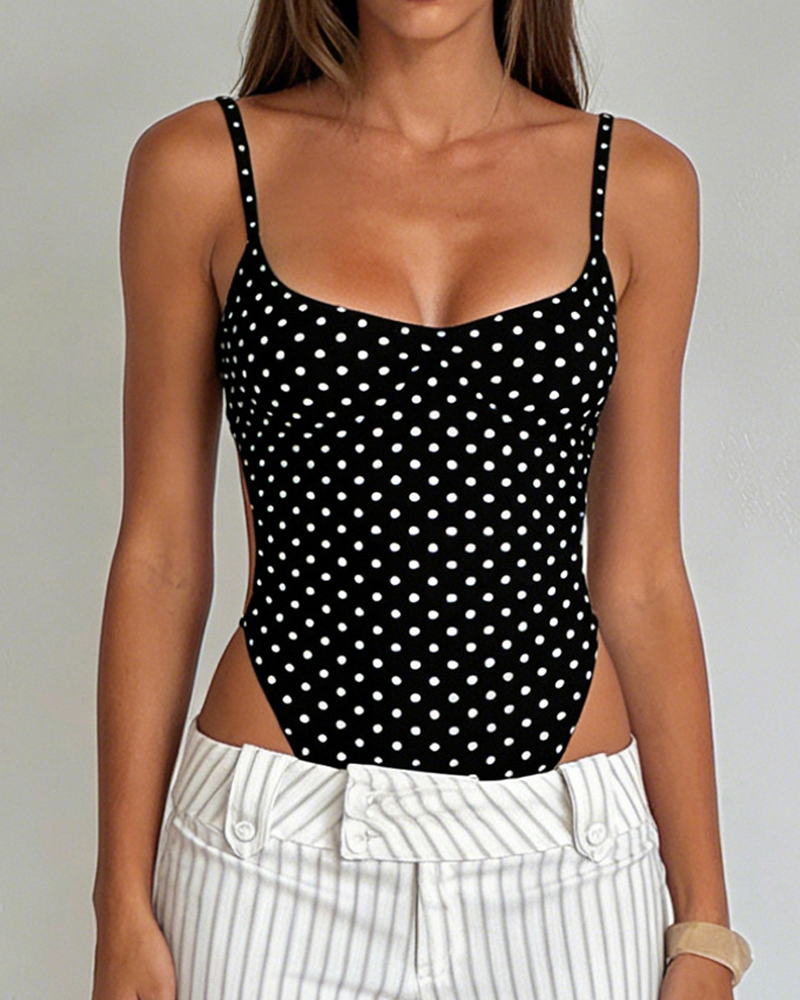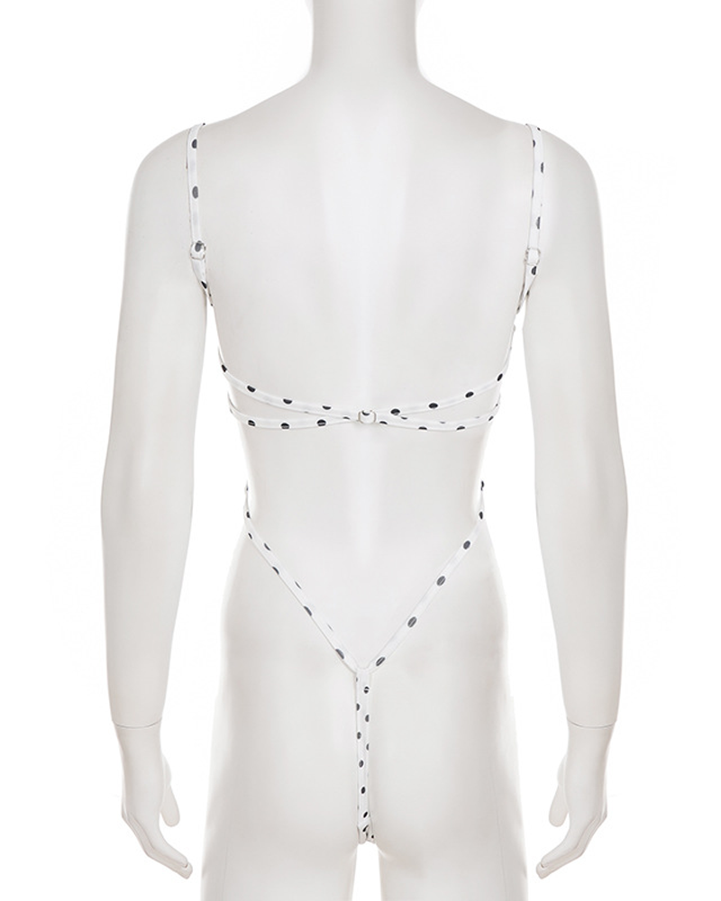 Stylish Black White Polka Dot Cutout Lace-Up Slim-Fit Bodysuit