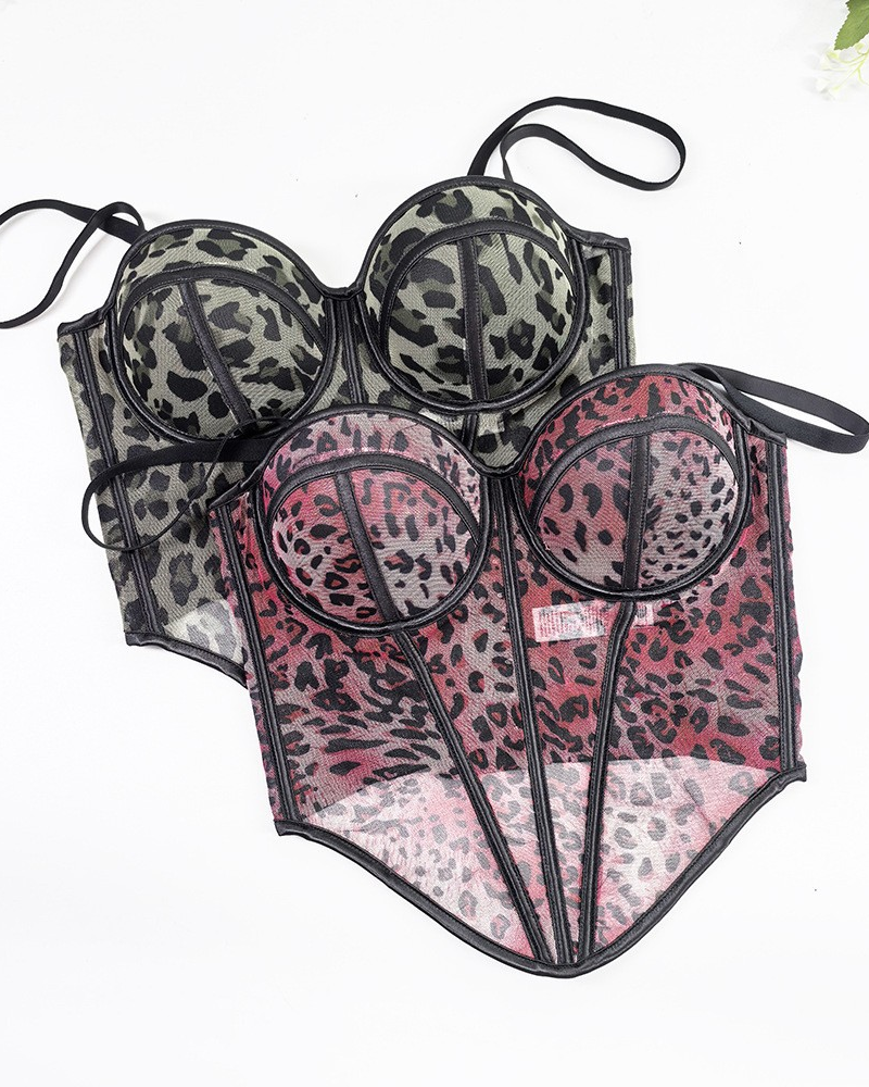 Leopard Print Mesh Corset Bralette