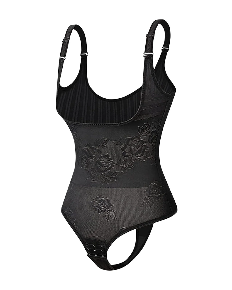 Flower Patterned Bodysuit With Exposed Chest Lifted Buttocks Tummy Control And Bust Support