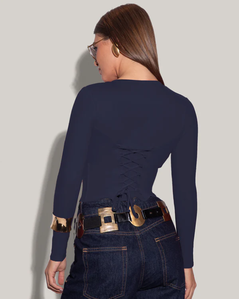 Long-Sleeved Tummy-Control Waist-Cinching Back-Adjustable Tie-Back Top(Pre-Sale)