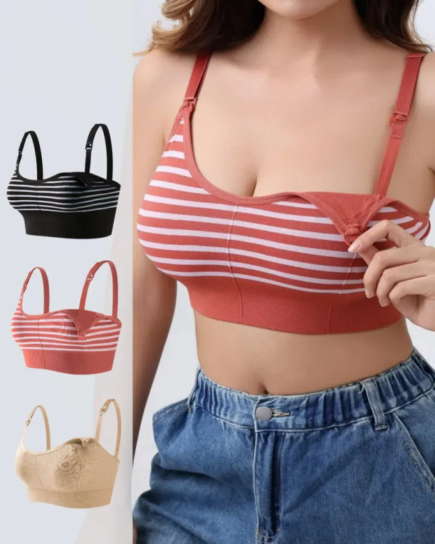 • Seamless striped skin-friendly fabric: Utilizing a seamless weaving process, the fabric is delicate and soft, conforming to the body like a second skin without feeling restrictive. The high-elastic nylon material offers excellent elasticity without being constricting, providing 30% more chest expansion space to accommodate changes in breast size during pregnancy and postpartum.