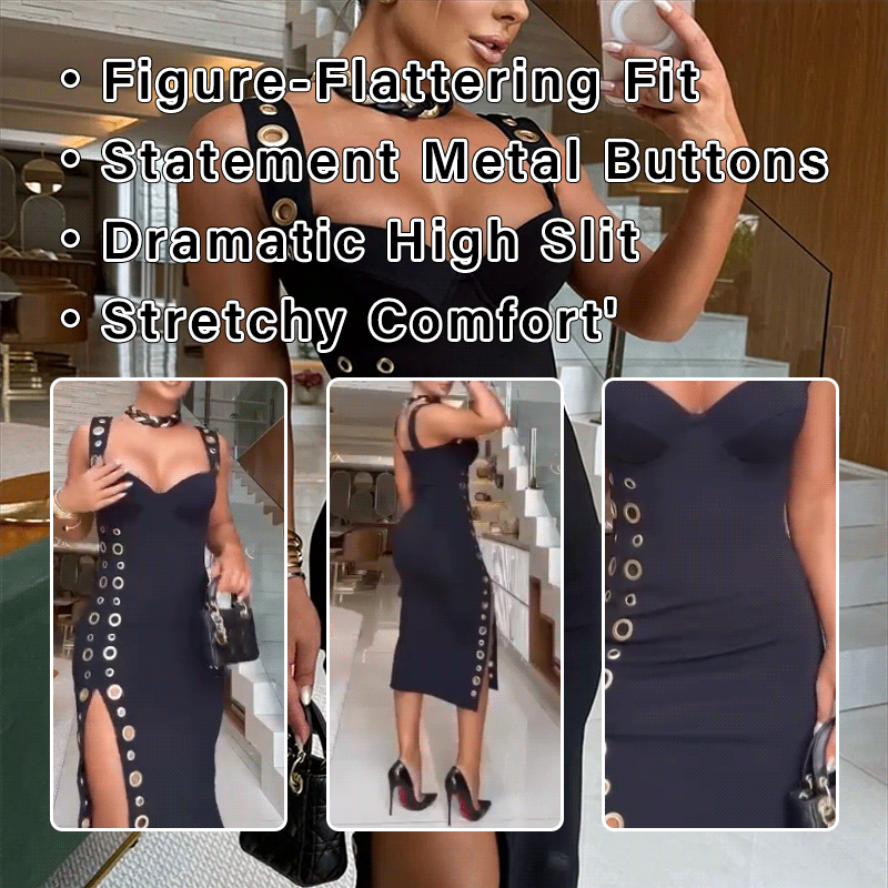 Metal Button Embellished Slit Dress Metal Button Embellished Slit Dress Metal Button Embellished Slit Dress Metal Button Embellished Slit Dress Metal Button Embellished Slit Dress