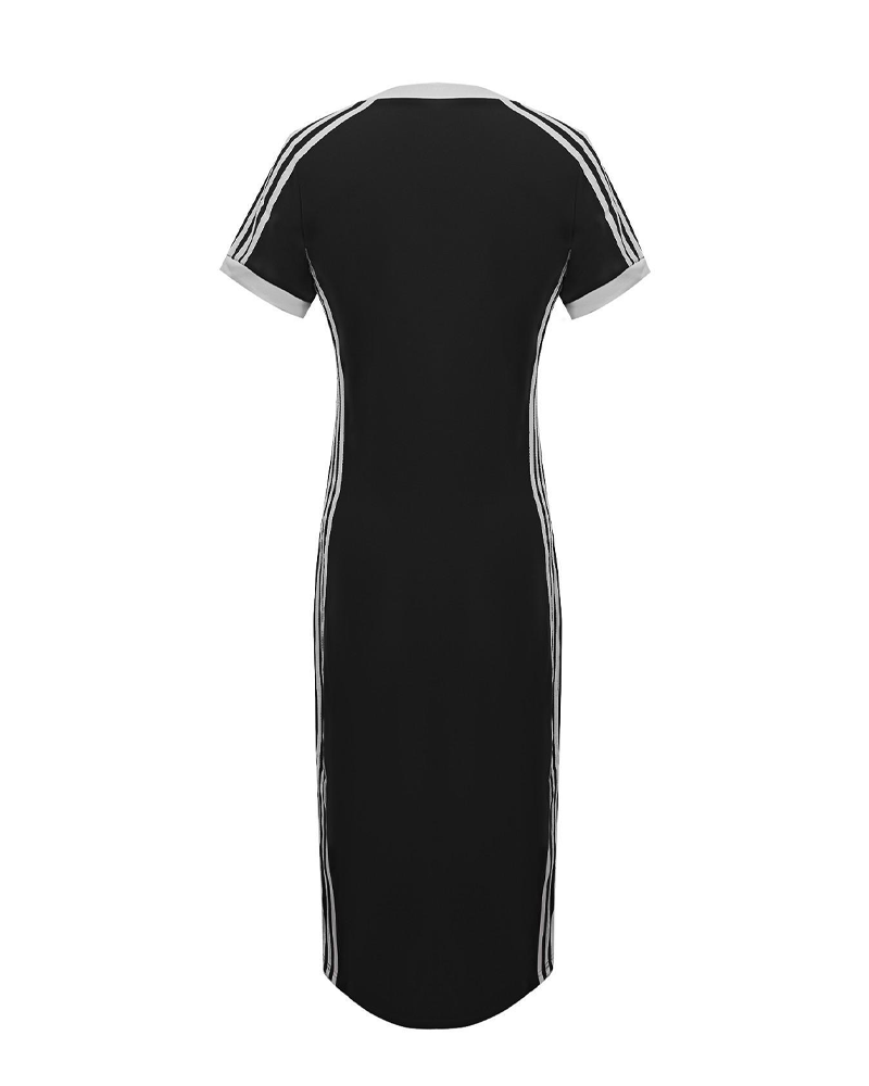 Casual Fashion V-Neck Striped Trim Short Sleeve Slim Fit Dress