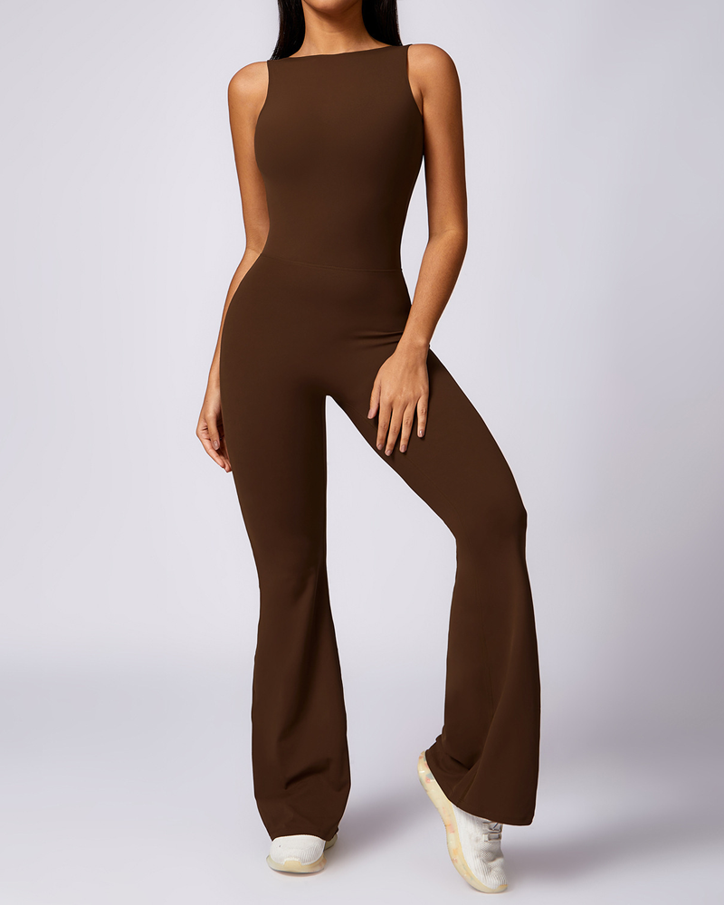 Casual Flared Backless Bodysuit With Hip Lift