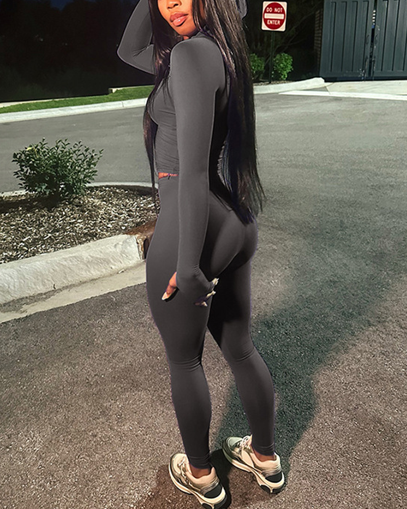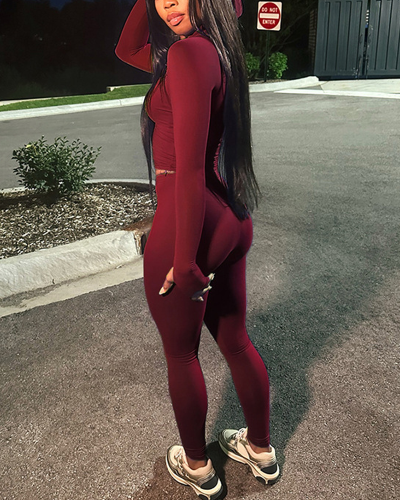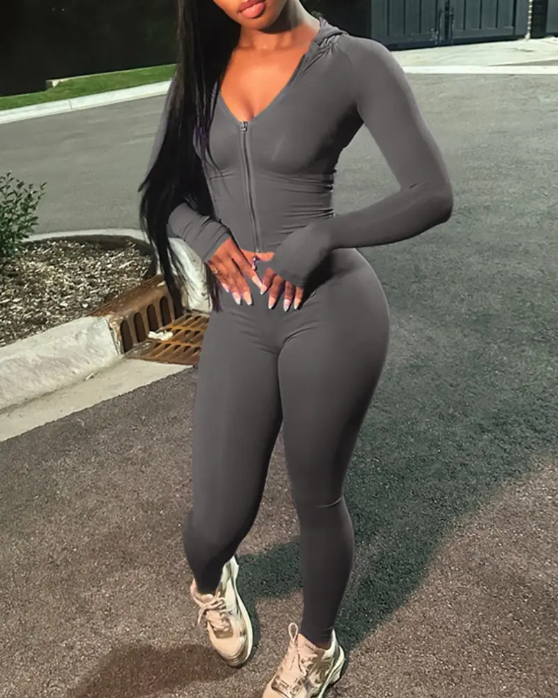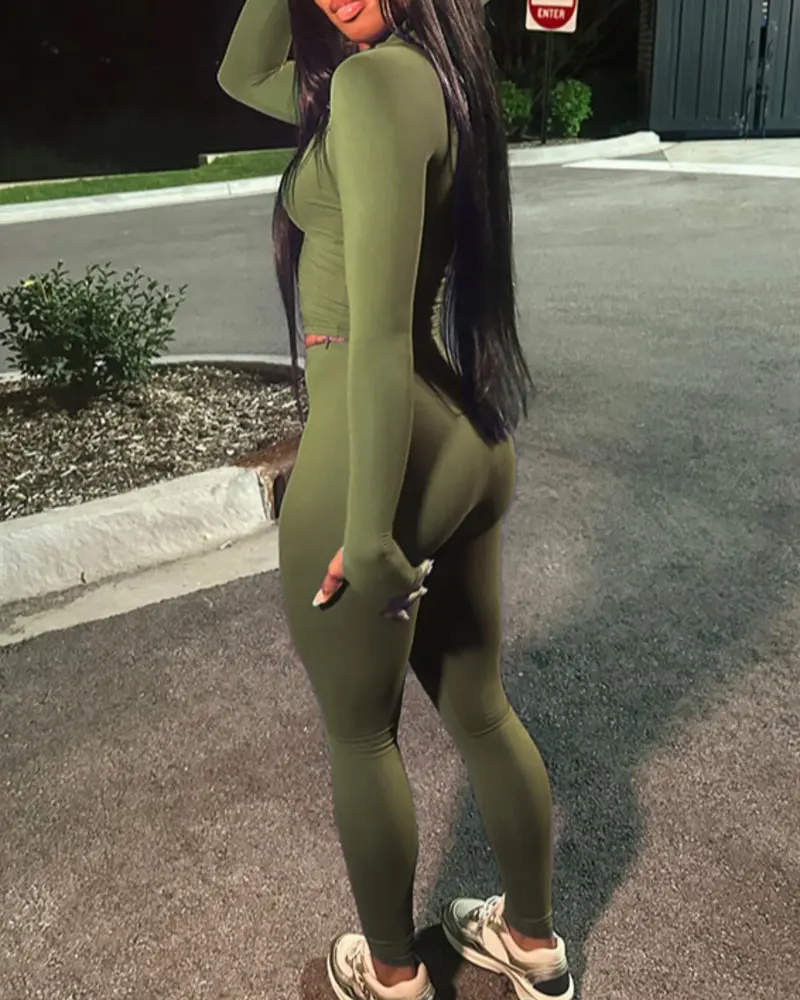 Casual Slim-Fit V-Neck Long-Sleeved Top And High-Waisted Skinny Pants Two-Piece Set