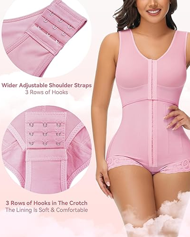 • Adjustable Bust:In addition to the adjustable three-row hook-and-eye closure, our full-body shapewear features a buttonless design for a smoother look. This avoids the marks that buttons might leave when wearing. The bust area uses double-layer fabric and has an opening for inserting your own breast pads.