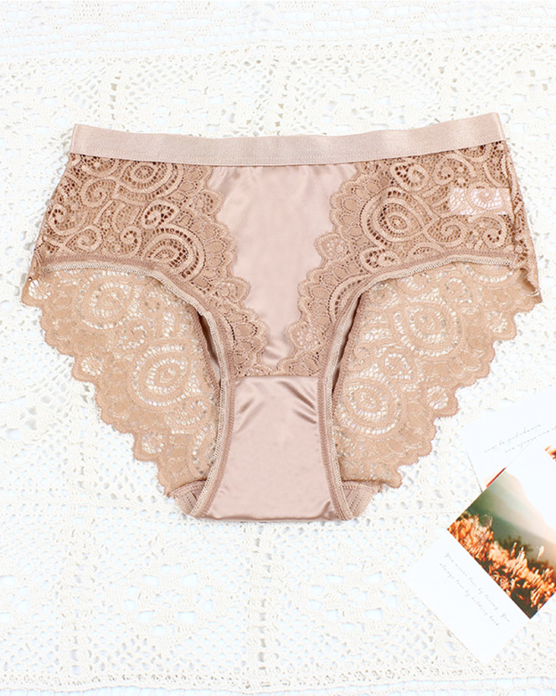 High-Waisted Breathable Color-Blocked Lace Floral Design