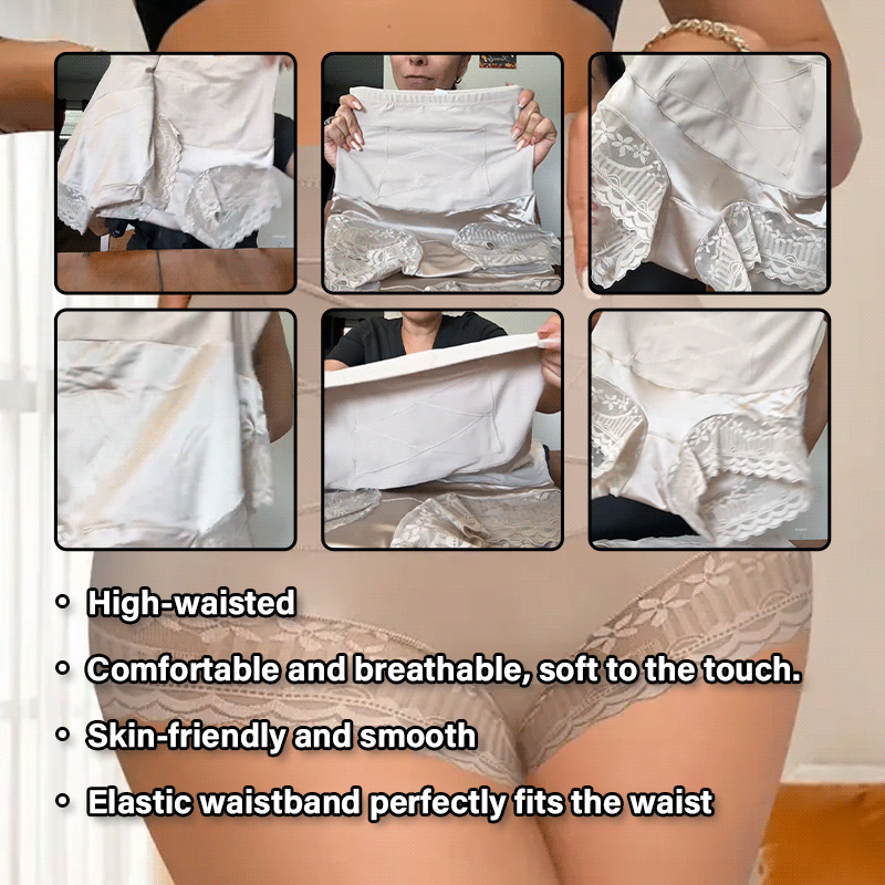 Material: 81% Polyamide fiber + 19% Spandex. High-waisted, color-blocked lace elastic design for postpartum tummy control and hip lifting. Comfortable and breathable, soft to the touch. Skin-friendly and smooth, providing full coverage and conforming to the curves of the hips. Elastic waistband perfectly fits the waist.