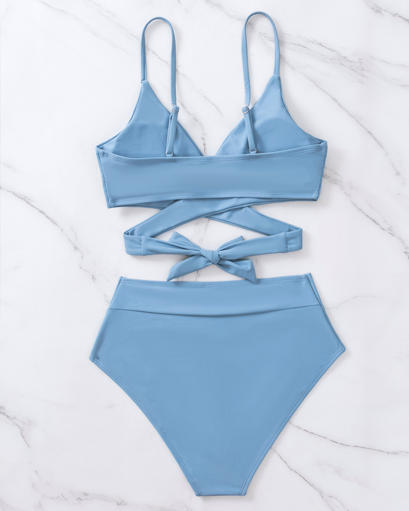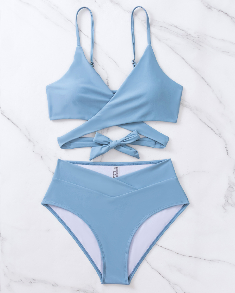 High-Waisted Cross-Strap Bikini Swimsuit Set