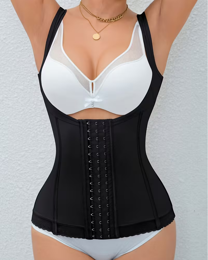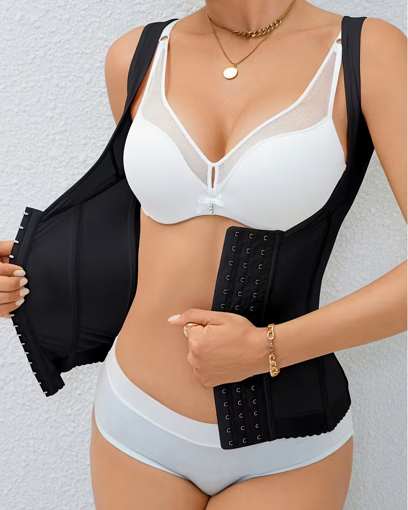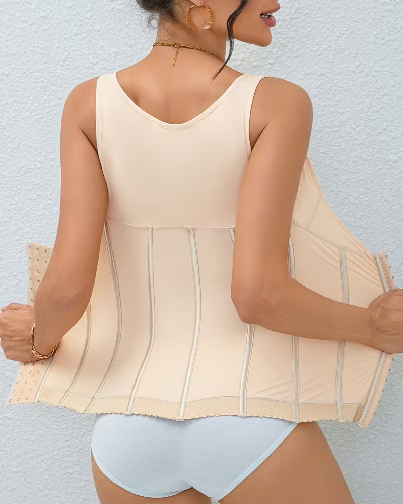 • Double-row, multi-position hook-and-eye closure: The front features a double-row, extended hook-and-eye closure design, extending from below the chest to the lower abdomen. The tightness can be freely adjusted according to body shape and needs. It can be loosened during the initial adjustment period and tightened later for enhanced shaping, precisely adapting to different stages of shaping needs.