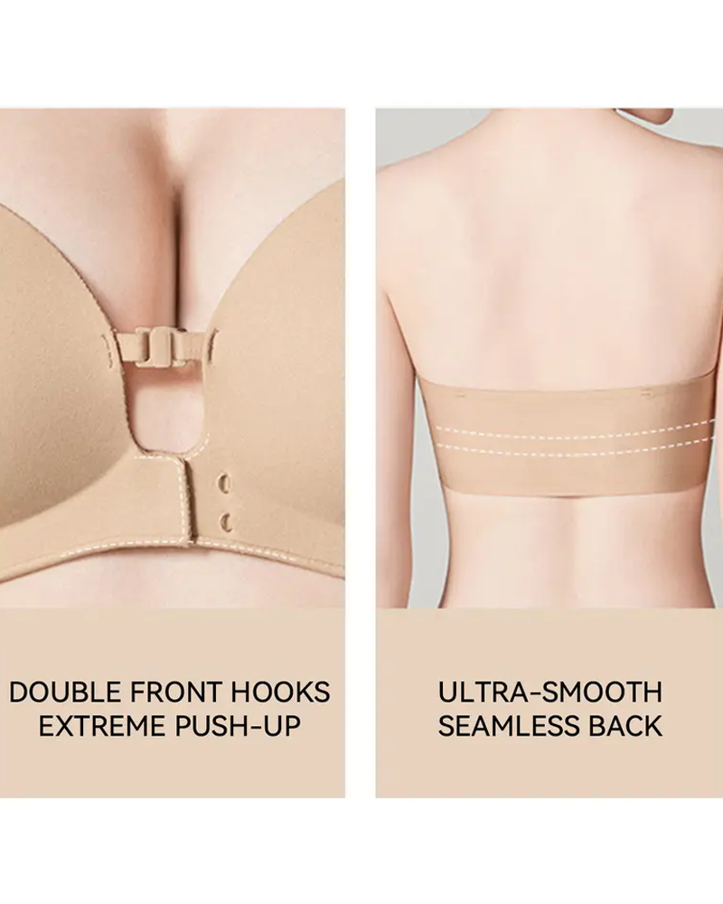 • Dual Front Closure + Extreme Lift & Center-Gathering: Features a double front hook-and-eye closure for effortless on-and-off convenience, providing double the centering and gathering power. The thickened molded cups deliver powerful lift and volume enhancement, instantly creating a full, deep-V cleavage—perfectly suited for smaller busts with no gaping.