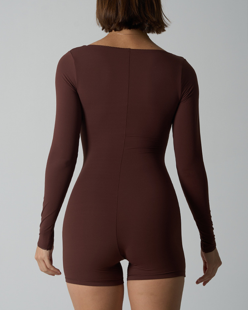 Lace Long-Sleeve Fitted Stretchy Square-Neck Bodysuit
