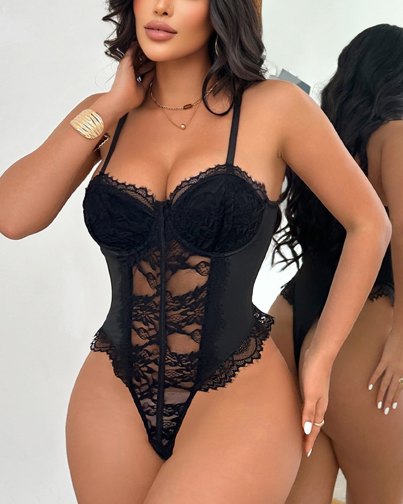 Lace-Trimmed Underwire Mesh Transparent Bodysuit