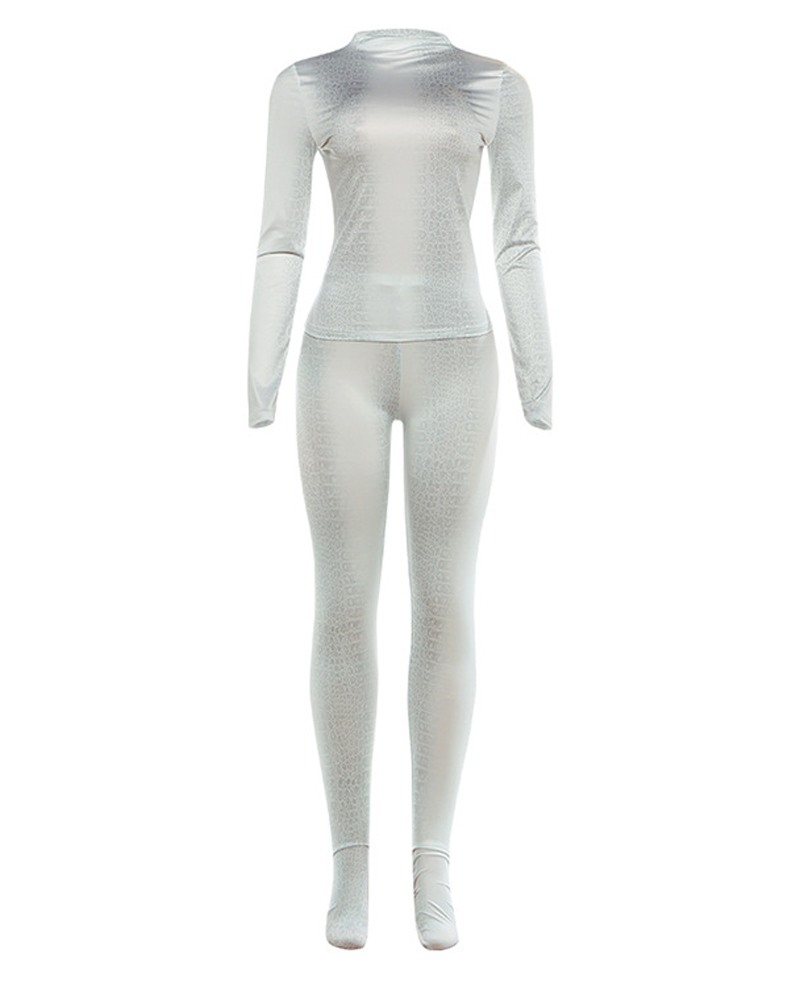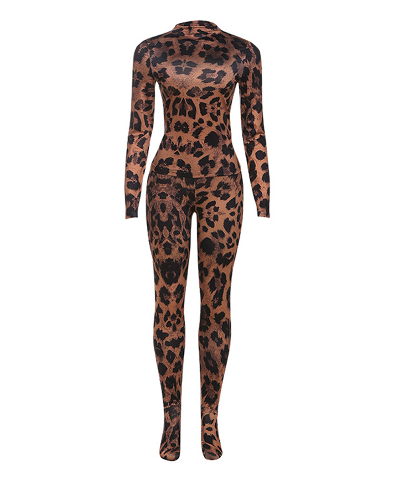Leopard Print Long Sleeve Slim Fit Two-Piece Set