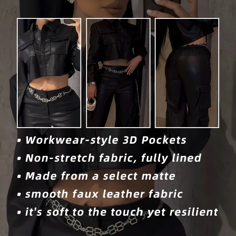 Long-Sleeved PU Leather Jacket Short Coat