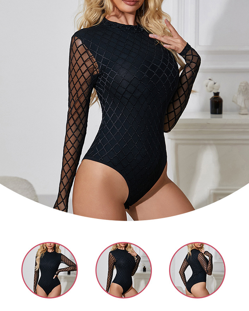 Mesh Long Sleeve Diamond Pattern Bodysuit