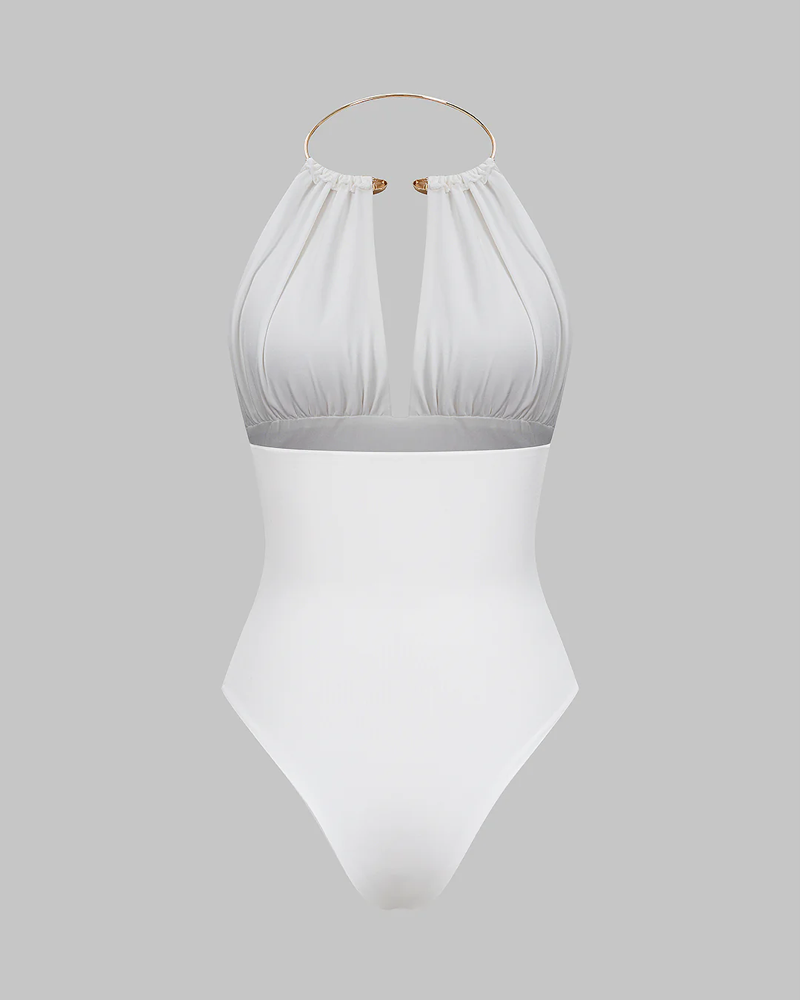 • Statement Gold Ring Halter Design: The eye-catching gold metal ring halter neckline adds a luxurious, modern touch, while the gathered detail creates a soft, draped effect that flatters your bust and elongates your silhouette.