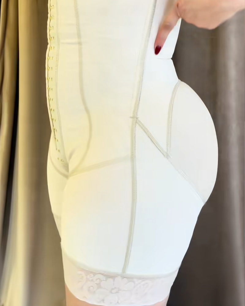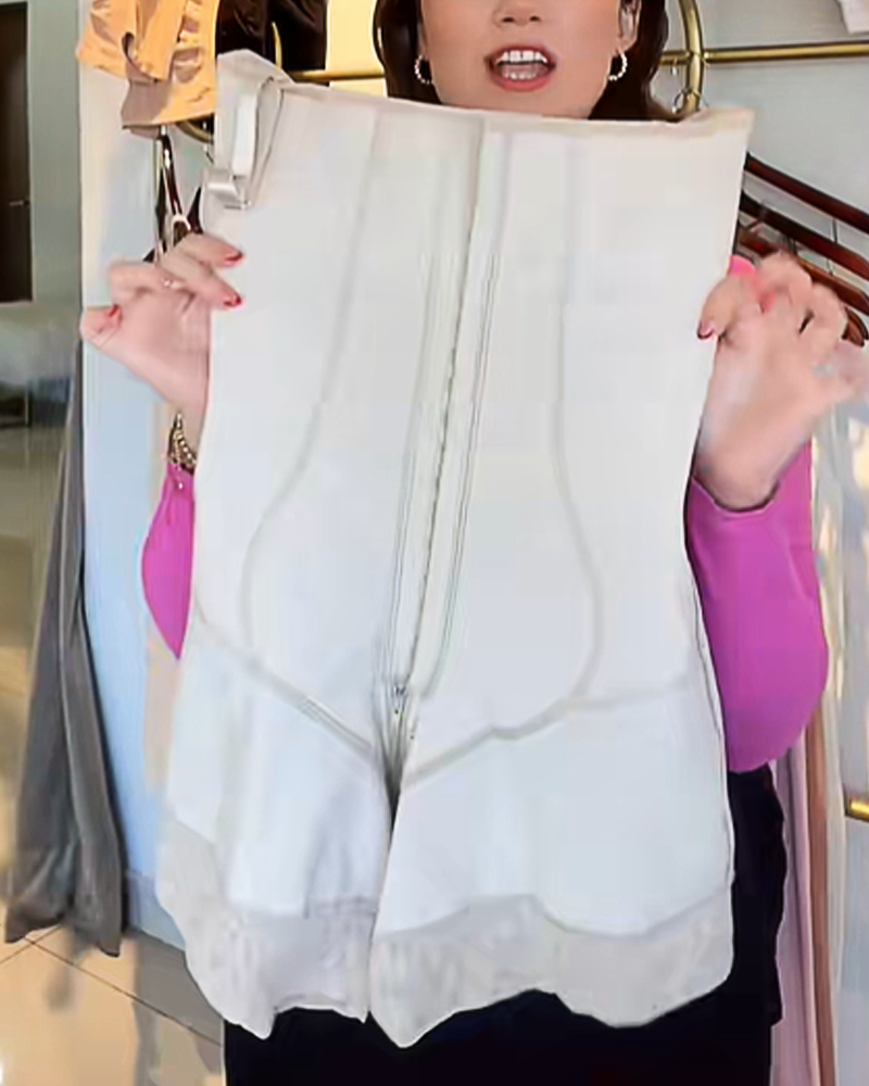 • High Waist with Hook & Zipper Closure: Features an ultra-high-waisted silhouette combined with a multi-level front hook-and-eye closure and a zipper design. This provides powerful compression to the waist and abdomen, effectively tucking away excess fat. The tightness can be adjusted to your preference, applying layered pressure to flatten the tummy and sculpt a slender waistline.
