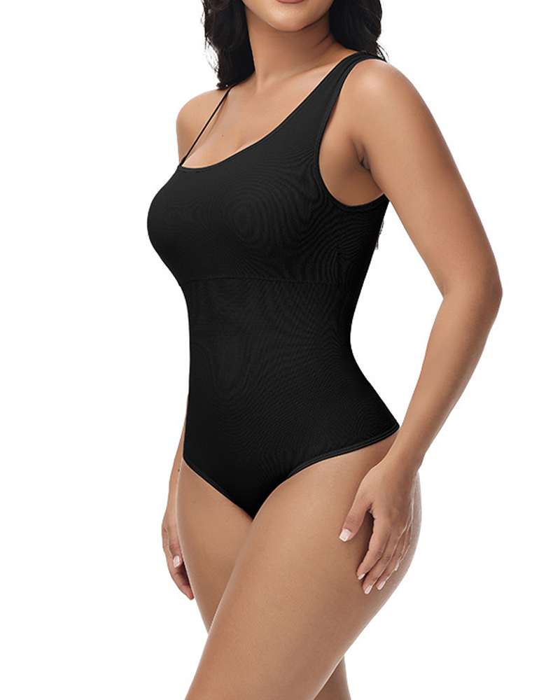 One-Shoulder Bodysuit With Padded Bust Tummy Control And Hip Lifting.
