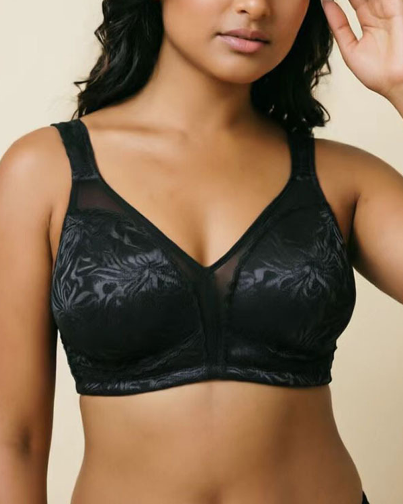 Plus Size Wire Free Jacquard Embroidered Lace Push Up Bra