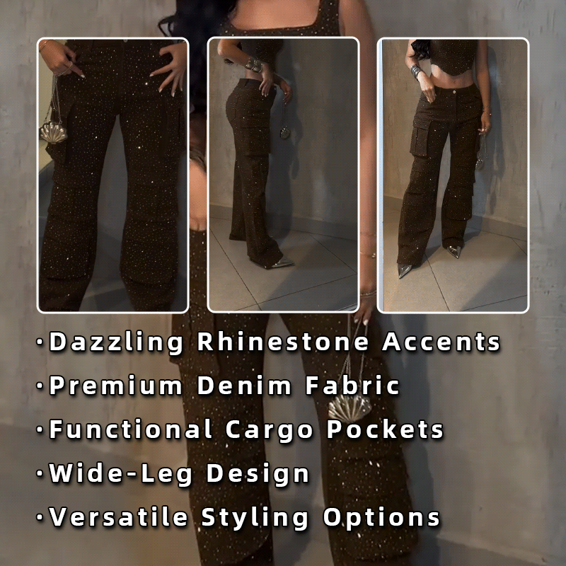 Rhinestone Suspender Overalls Pants Set