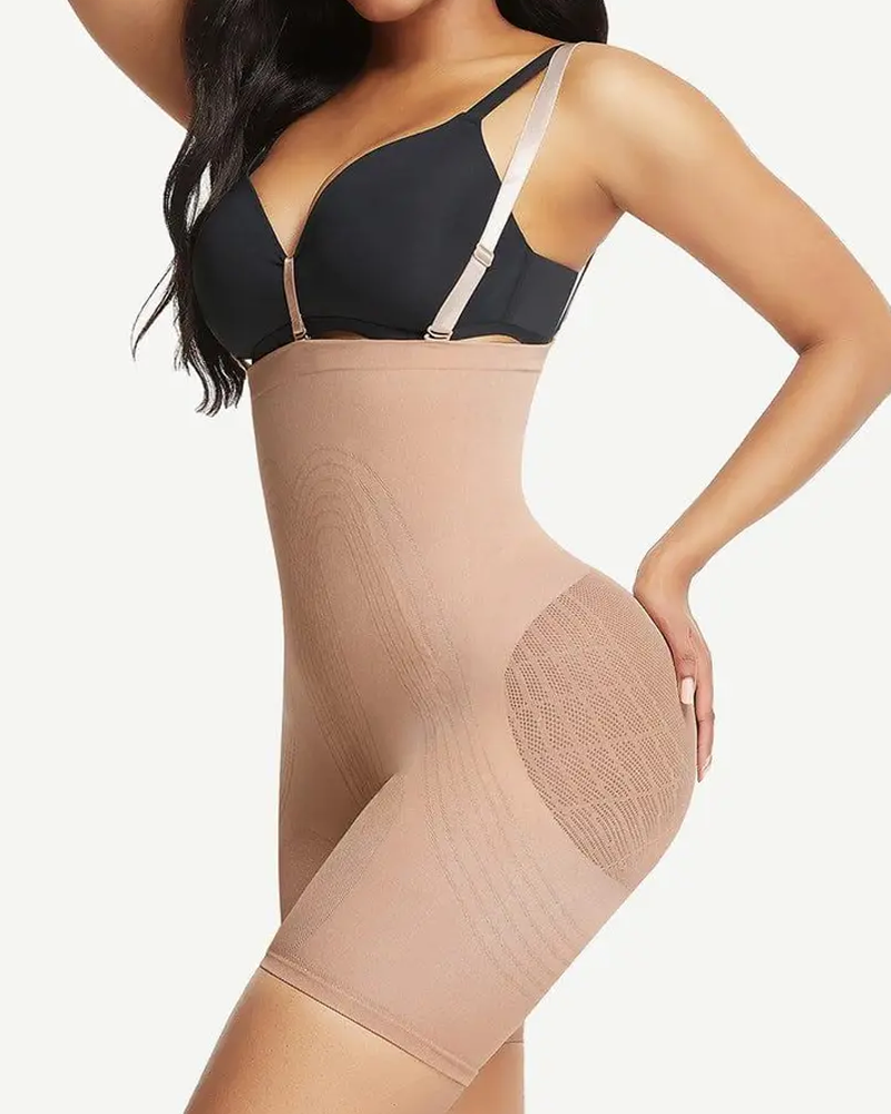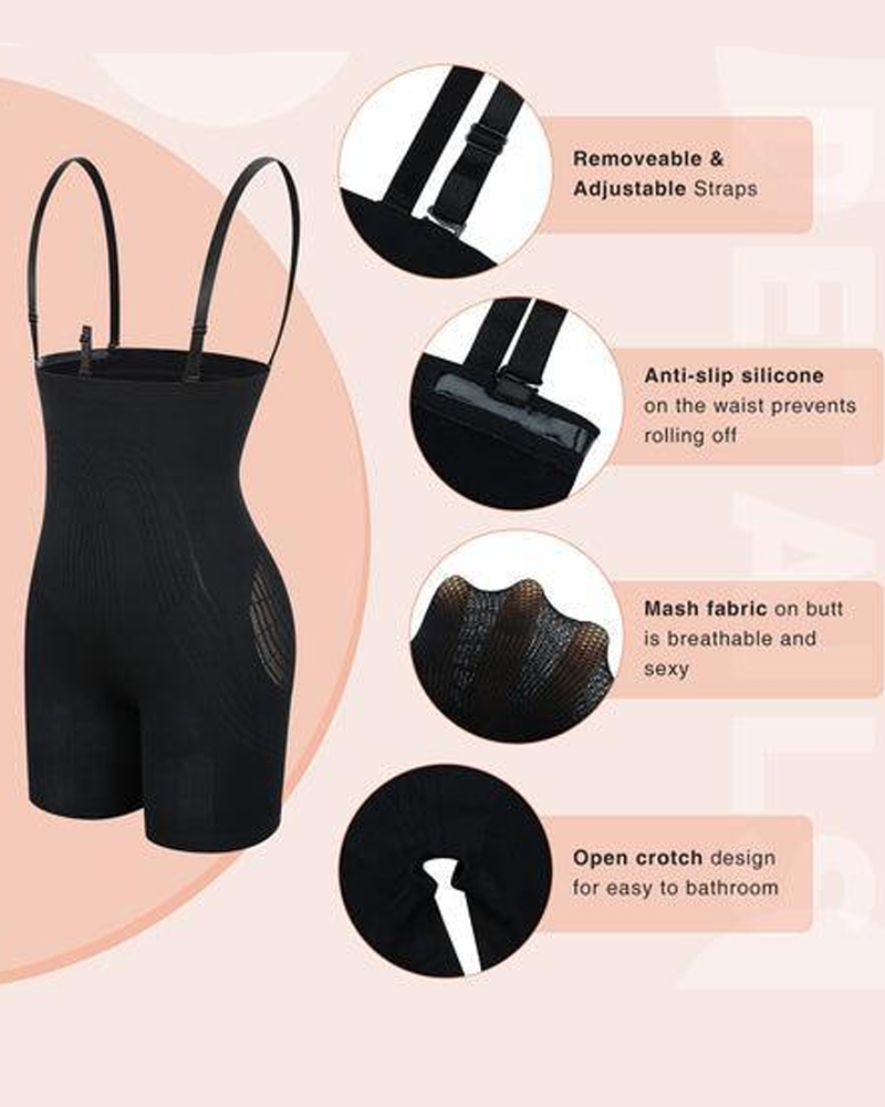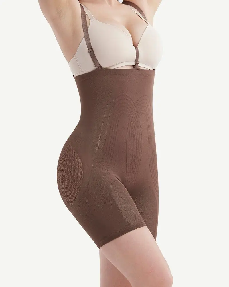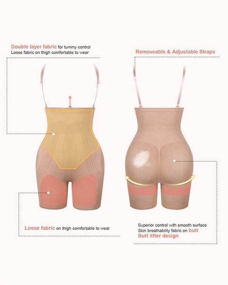 Seamless High-Waisted Shapewear With Bra Clasp And Shoulder Straps (Pre-Sale)