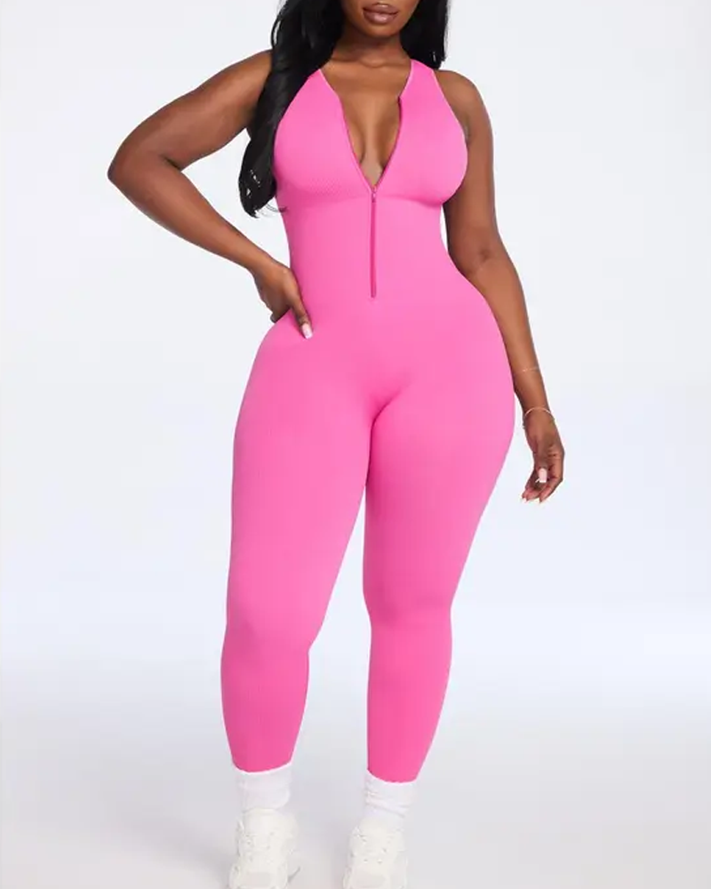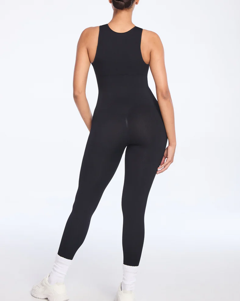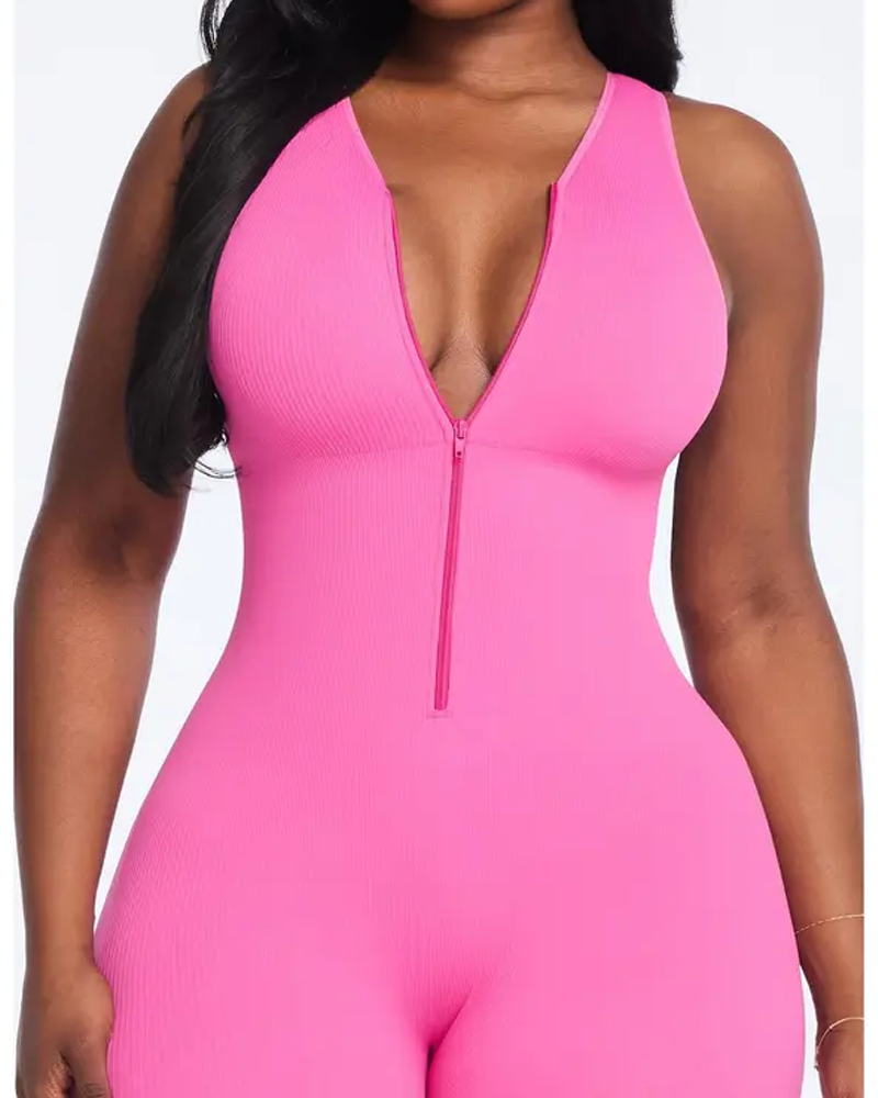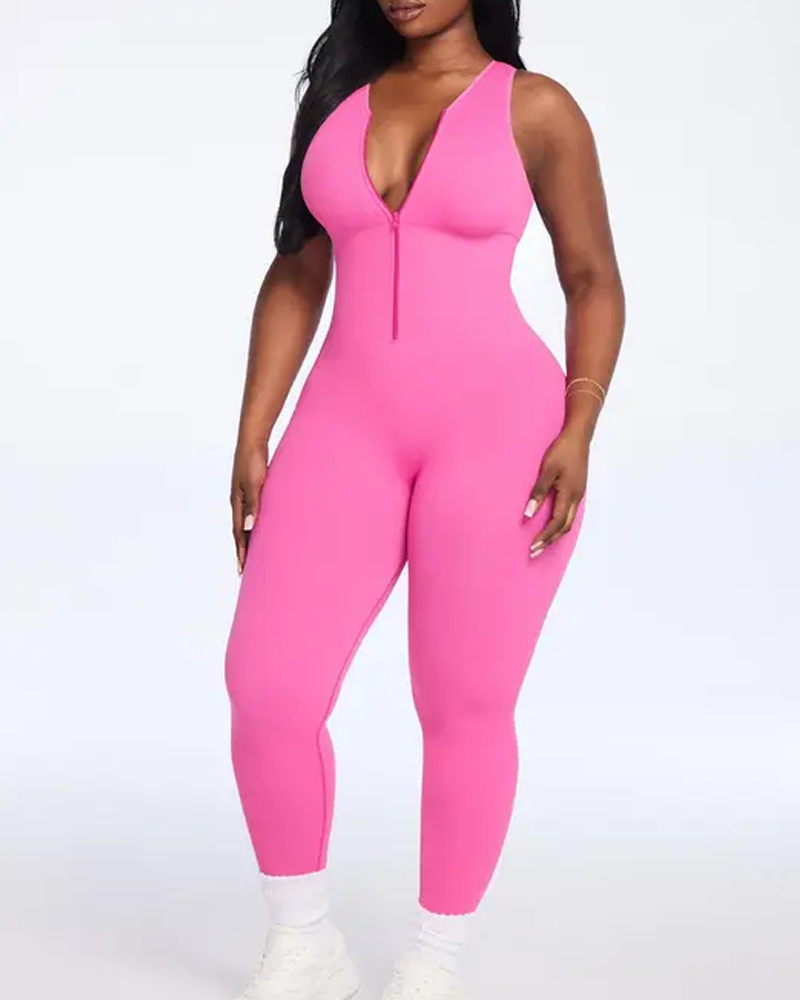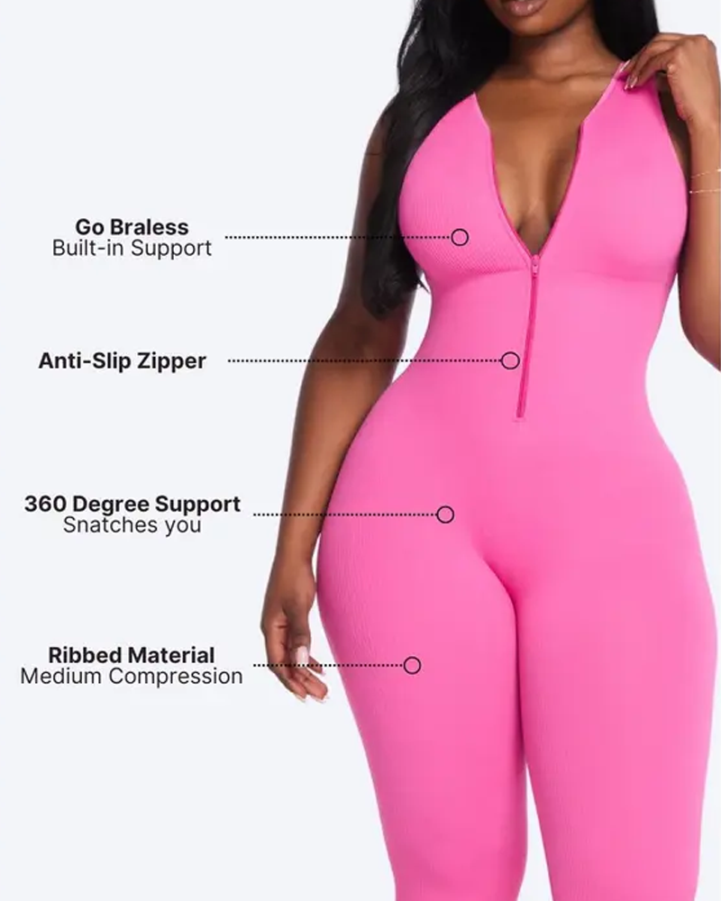 Seamless Ribbed Compression Zip-Up Jumpsuit(Pre‑Sale)