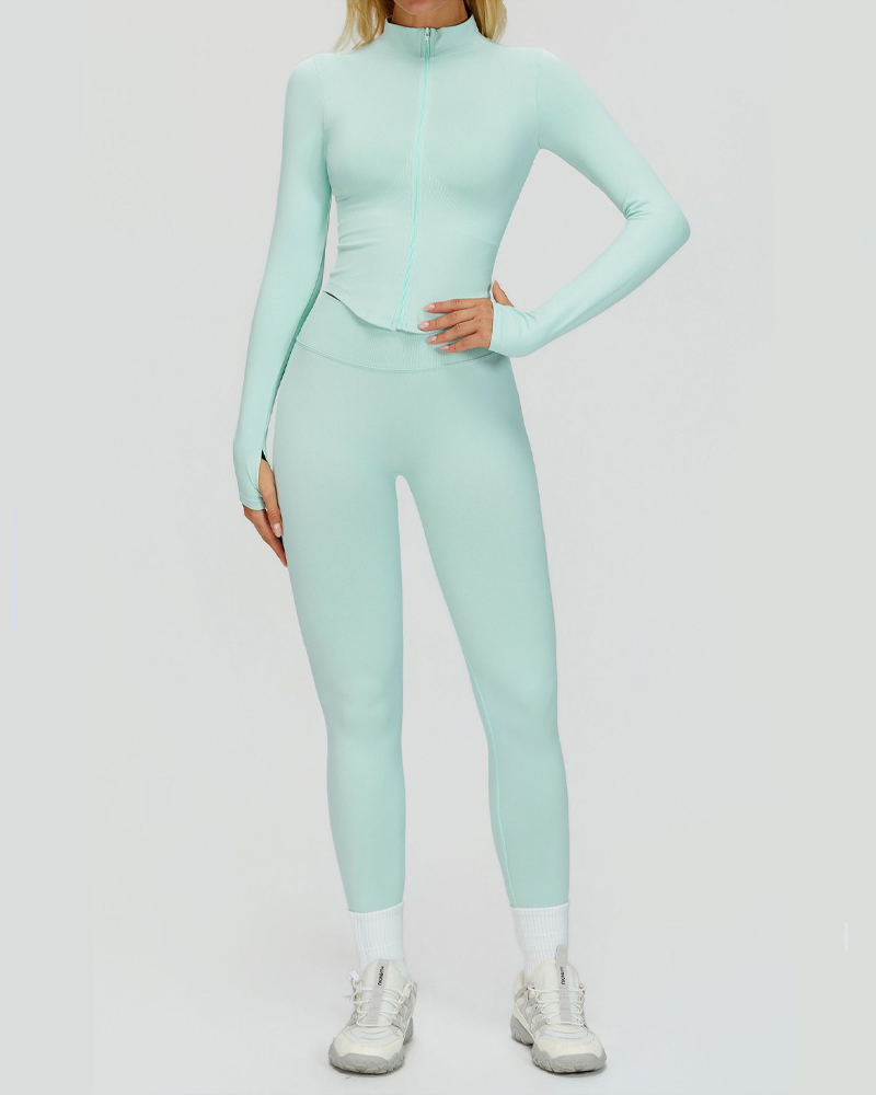 Seamless Slim Fit Quick Dry Tank Top High Waist Leggings Zip-Up Jacket 3Piece Set