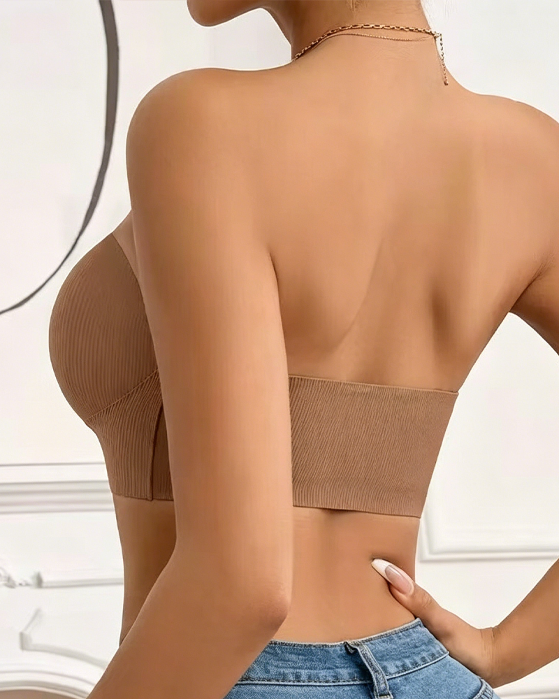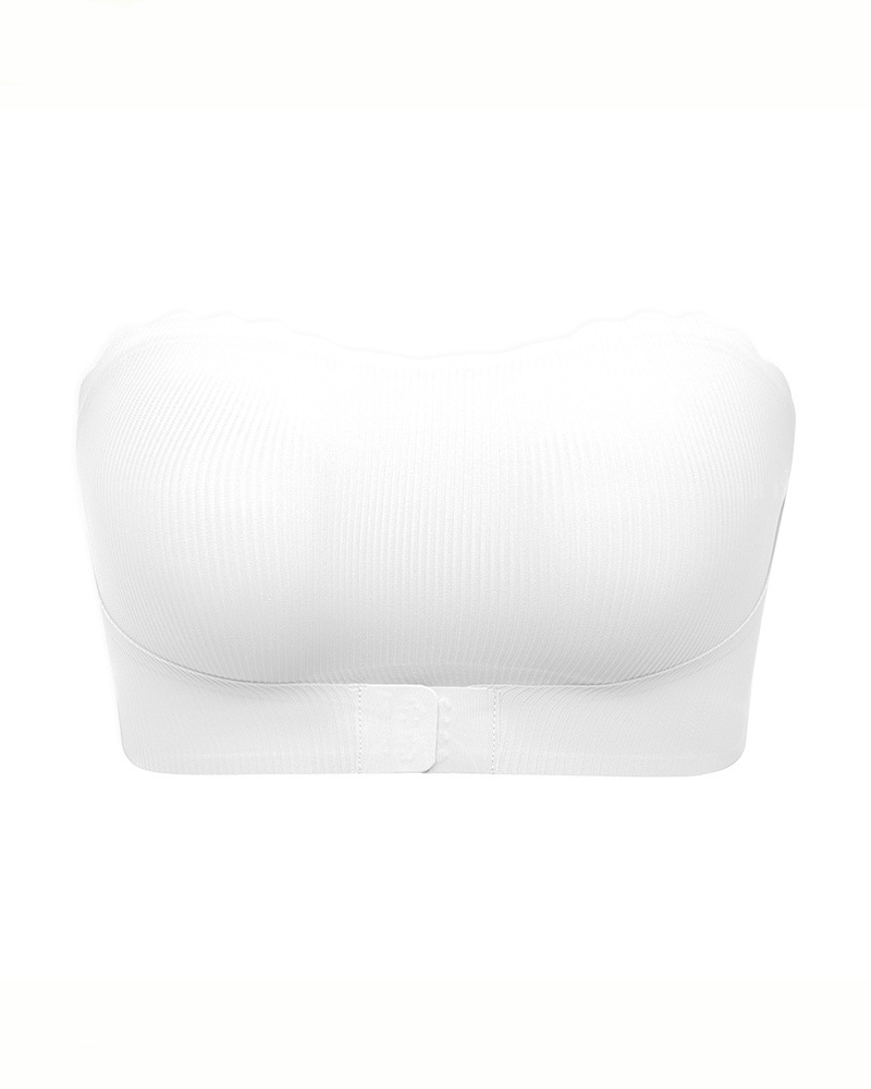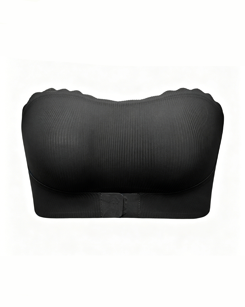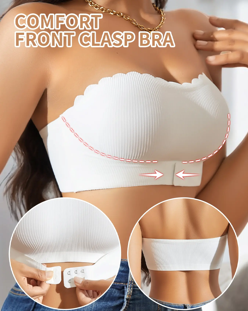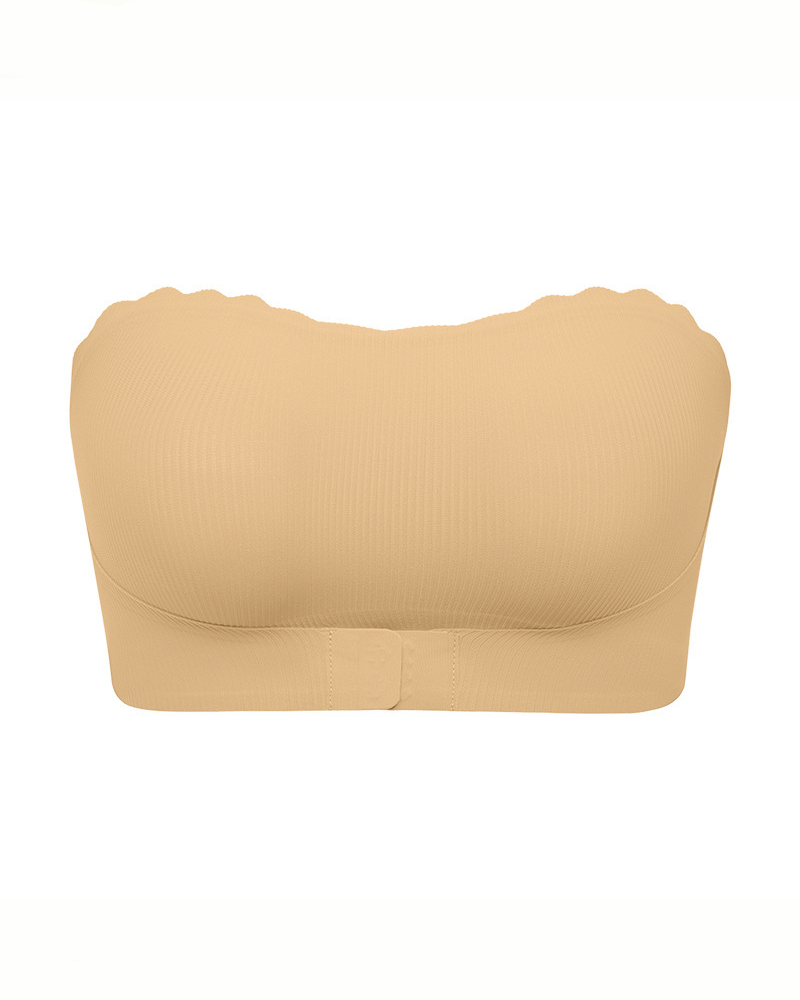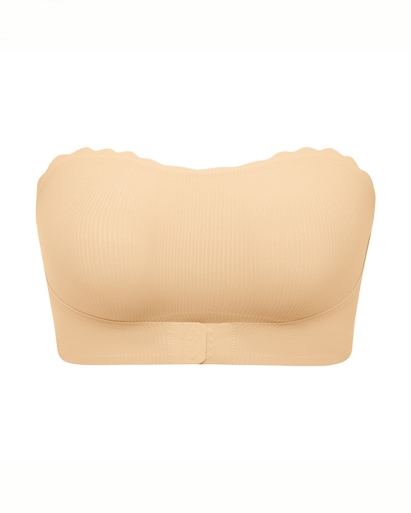 Seamless Wireless Scallop Edge Strapless Front Closure Bra