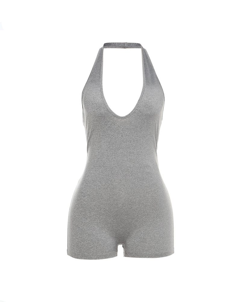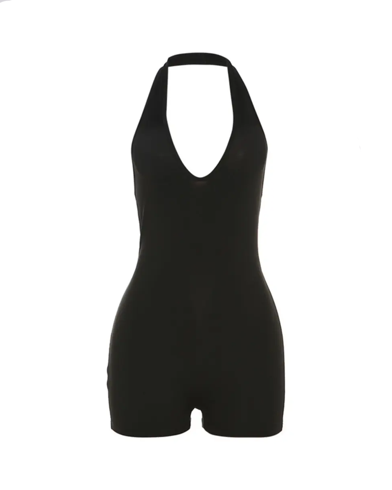 Sleeveless Halter Neck Deep V Backless High-Waisted Bodysuit