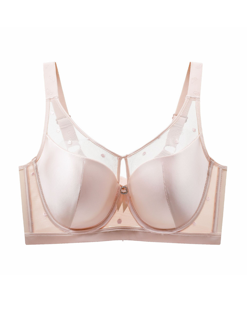 • Seamless Cups + Soft Mesh Panels: The seamless, smooth cups are invisible even when paired with bodysuits or T-shirts, enhancing the overall look. The soft mesh panels with delicate polka dots add a stylish touch and prevent monotony while ensuring breathability.