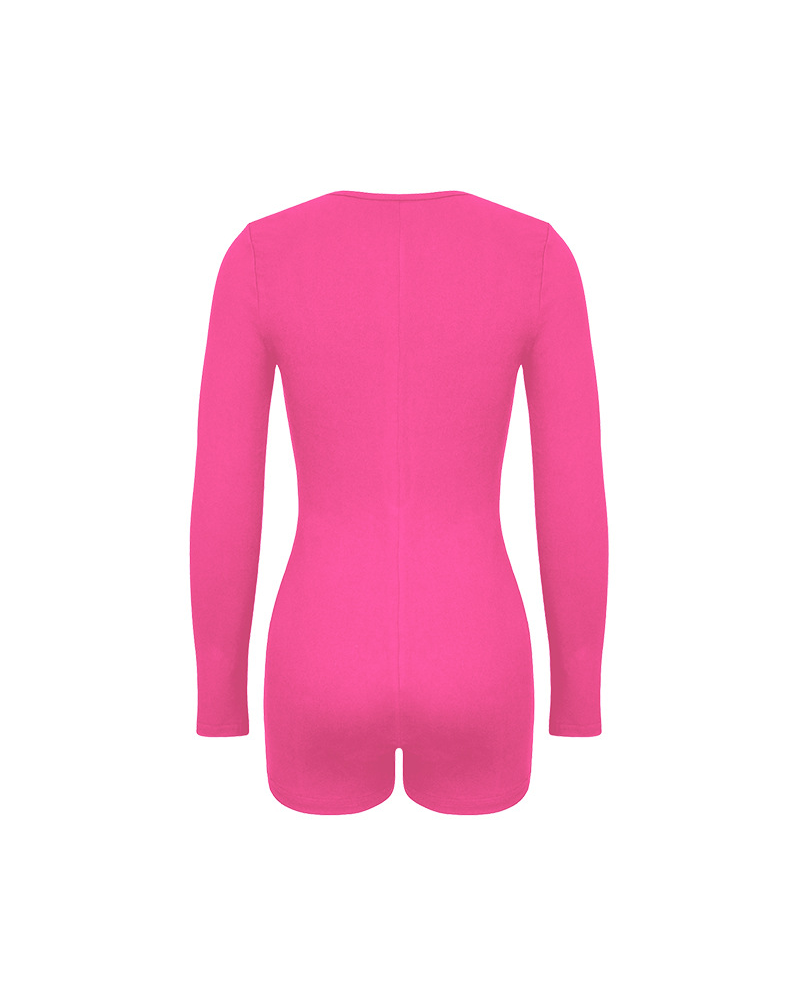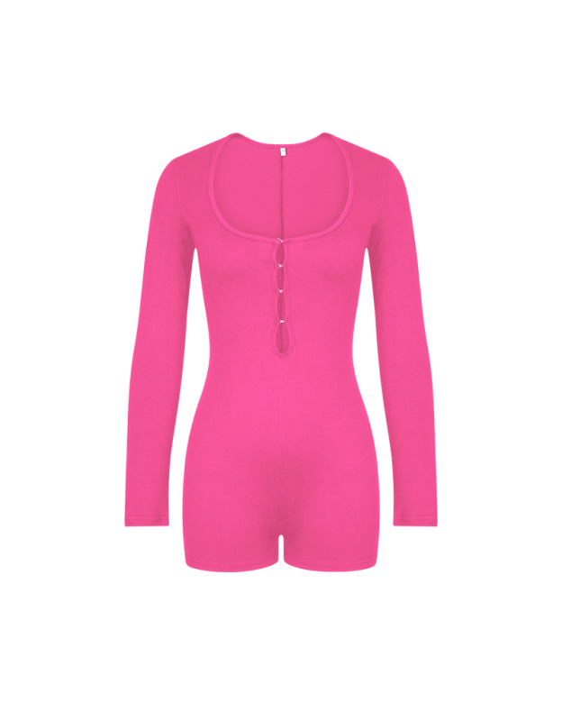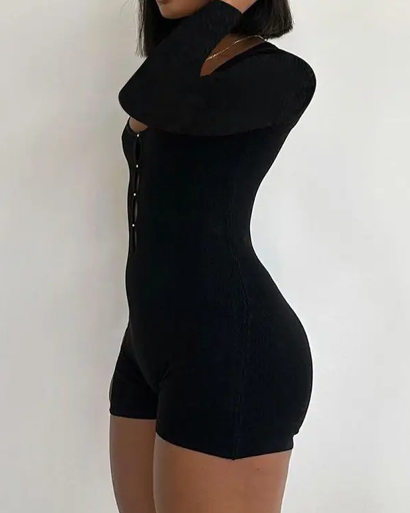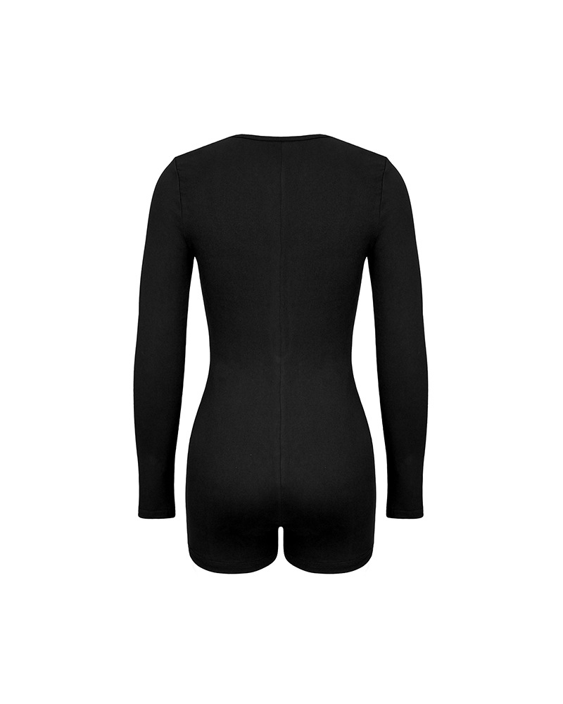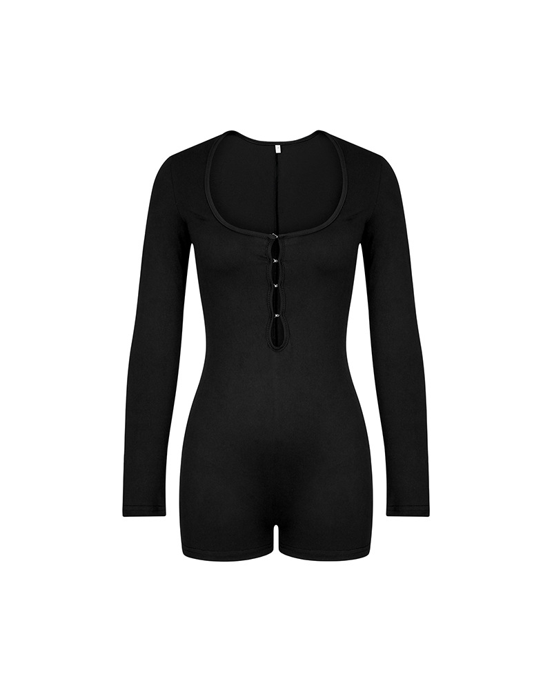 Tight-Fitting Hollowed-Out Round Neck Long-Sleeved Bodysuit