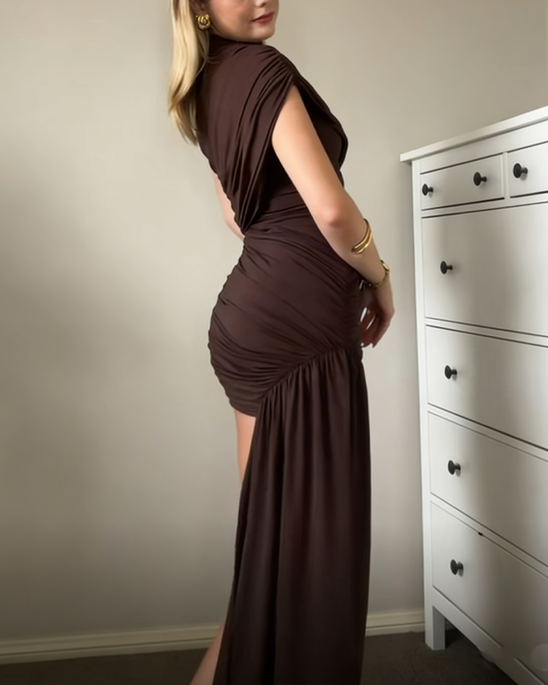 Asymmetrical ruching: A single-sided ruching design cinches the waist, creating a slimming effect and highlighting the hips and waist, visually optimizing body proportions.