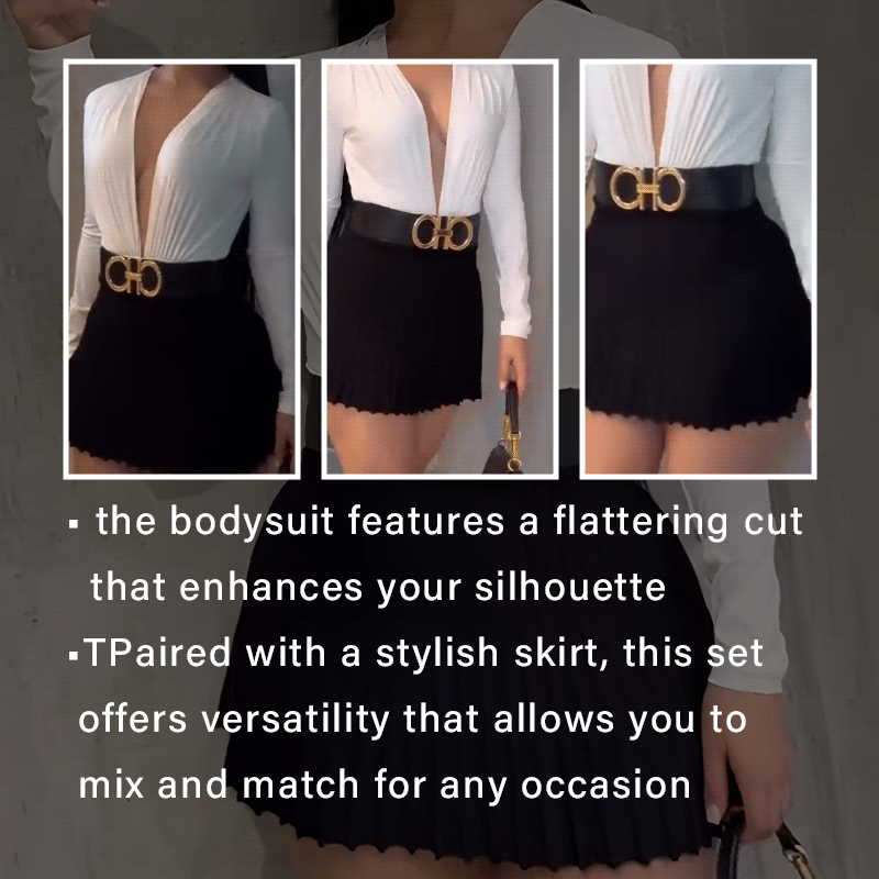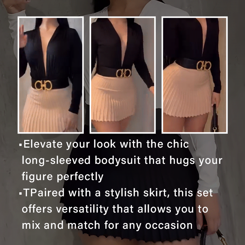 Women's Fashion Long-Sleeved Bodysuit Skirt 2-Piece Set