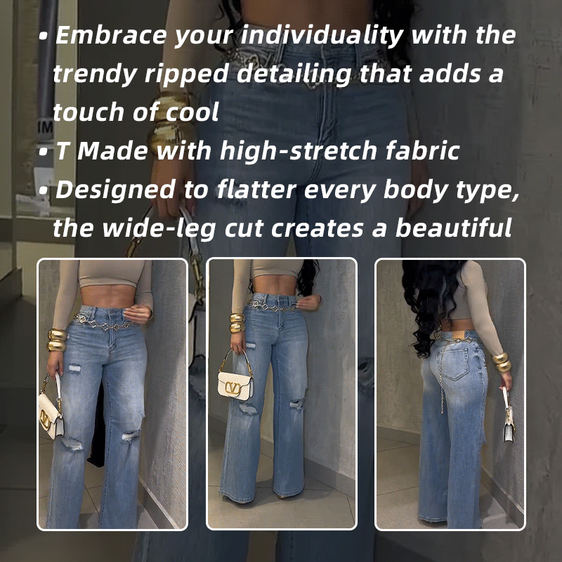 Women's High-Stretch Ripped Wide-Leg Jeans