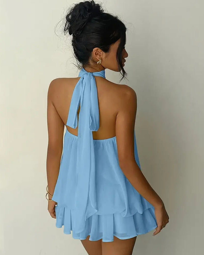 Elegant Chiffon Open-Back Tie Mini Dress