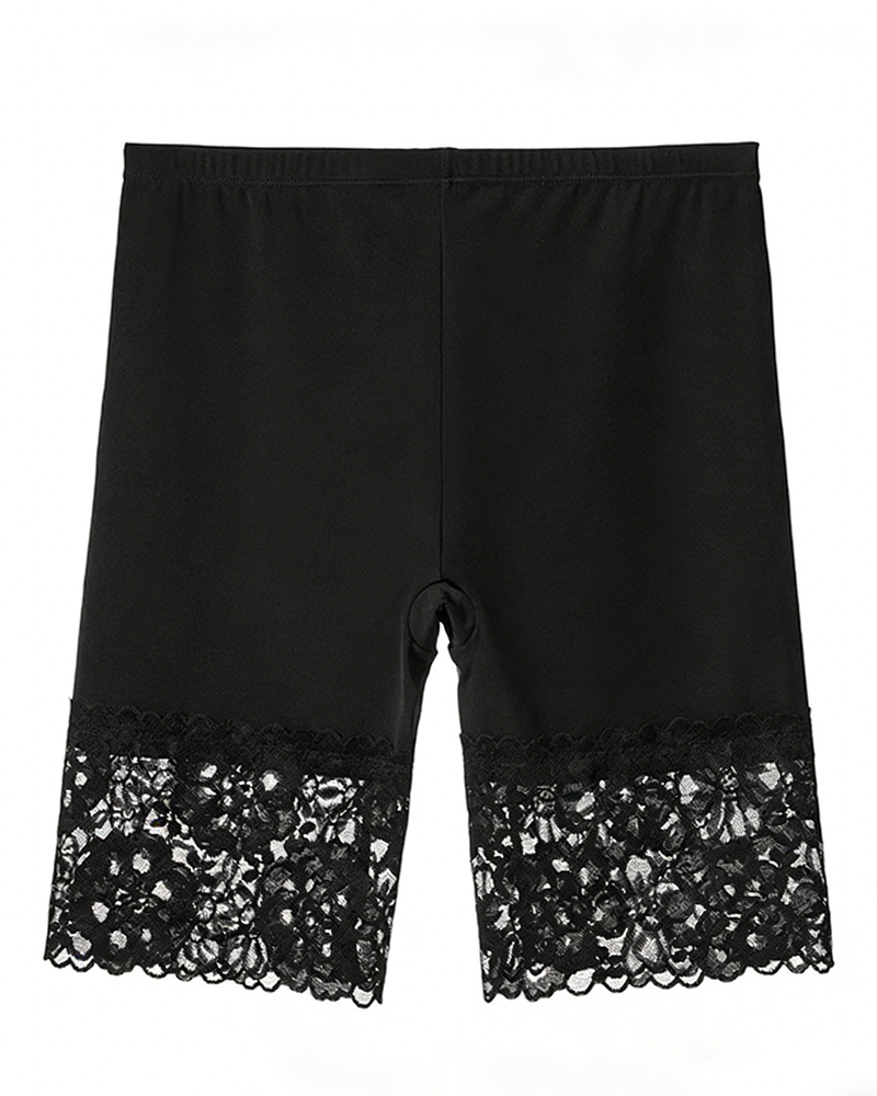 Lace Trim High-Waisted Safety Shorts